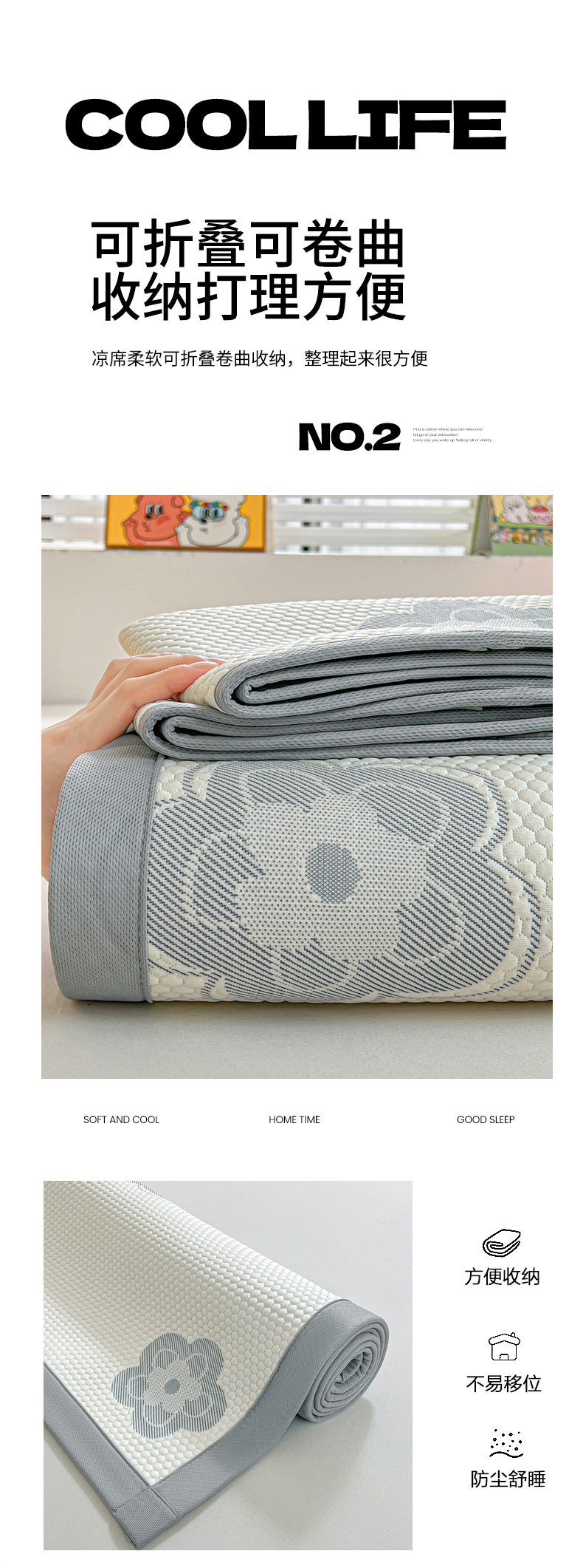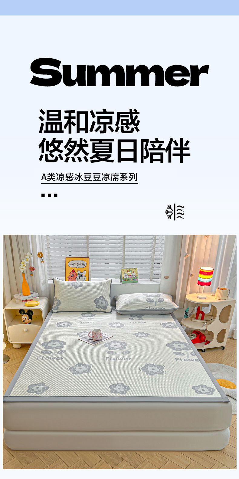 (总)爱思凯家纺 2026新款A类凉感冰豆豆宿舍凉席席子凉席-灵萌-成人款