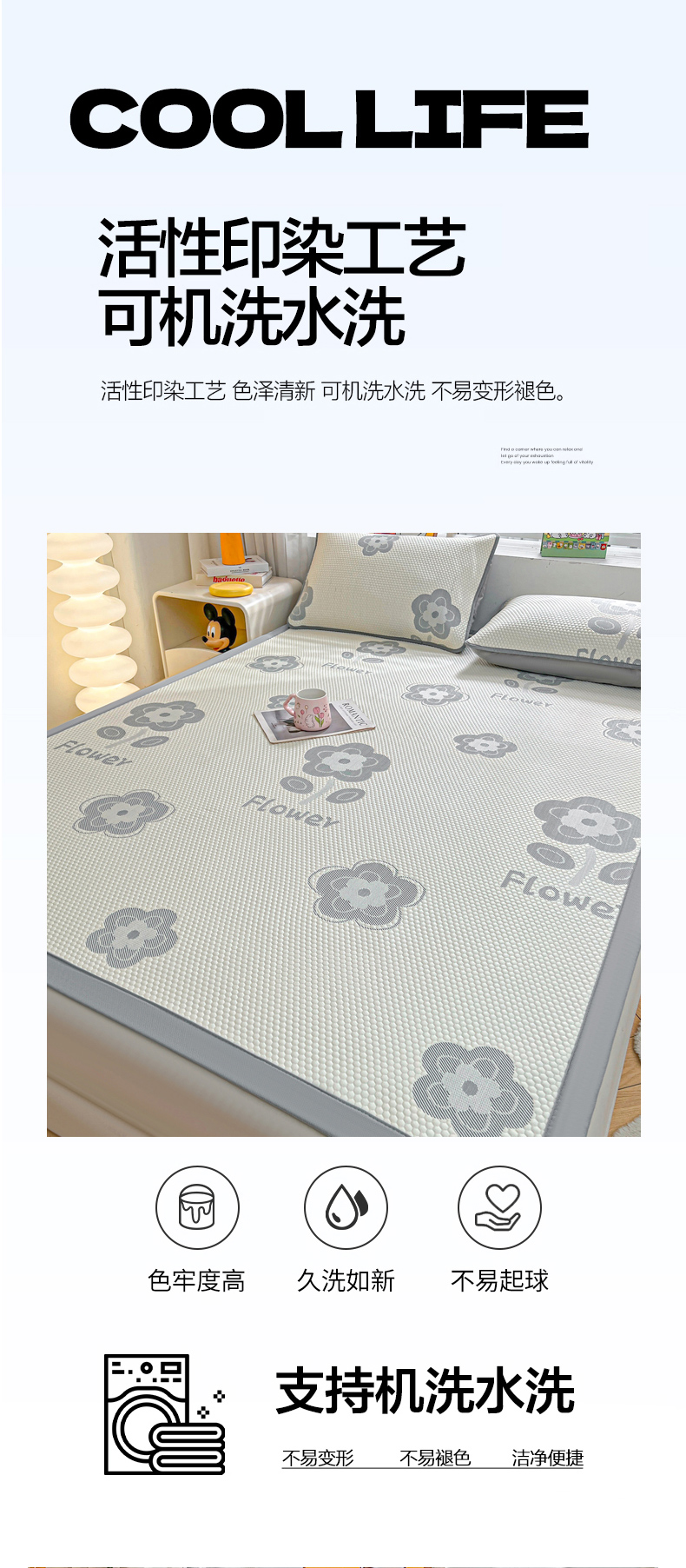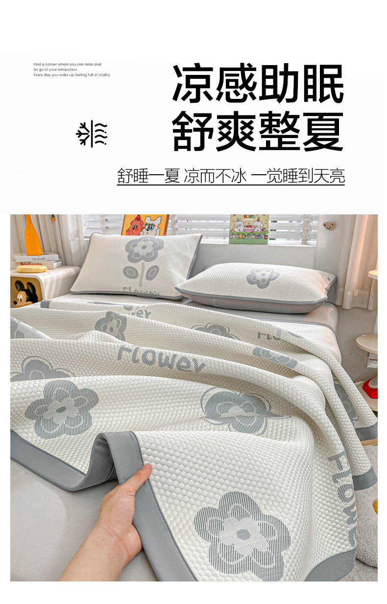 商品名称:(总)爱思凯家纺 2026新款A类凉感冰豆豆宿舍凉席席子凉席-灵萌-成人款