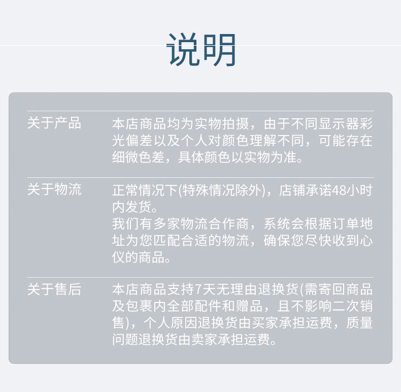 云仓服务3:享急速发货,18点之前下单,2小时内发货,保证发货时效;