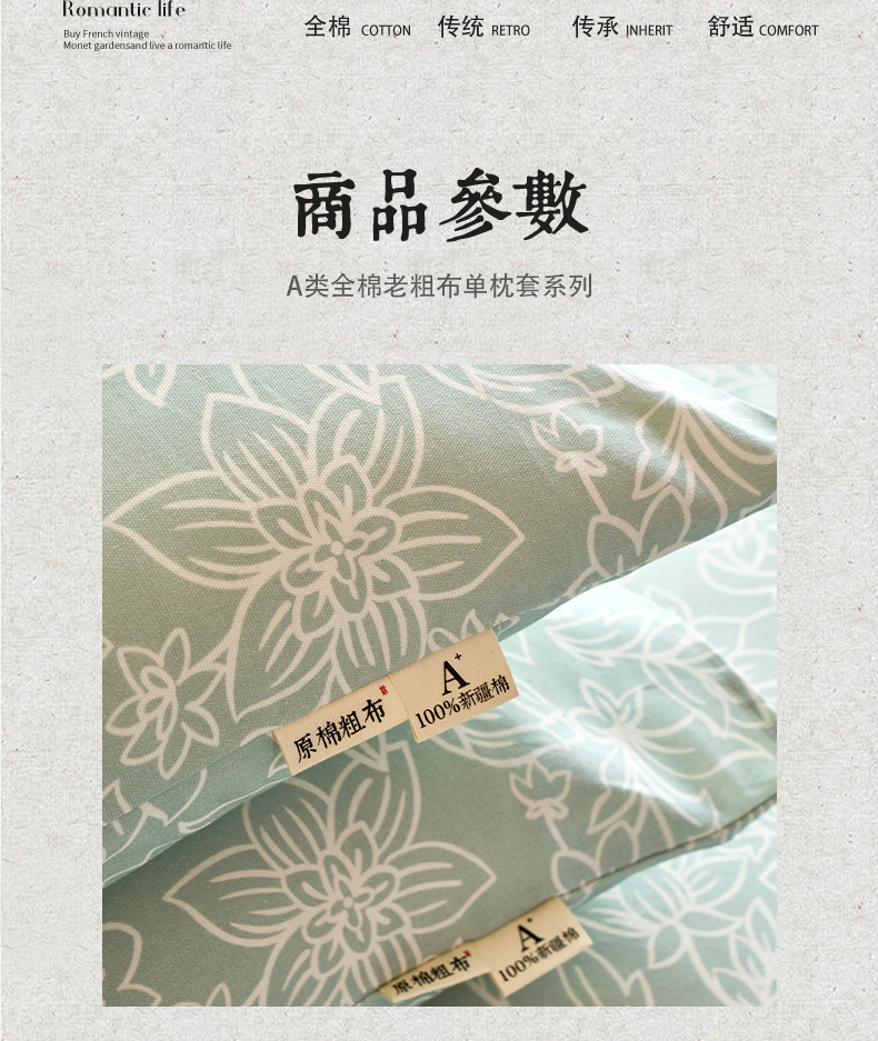 商品名称:春皖家纺 2026新款全棉老粗布普通款单枕套枕套单件 意禾Y