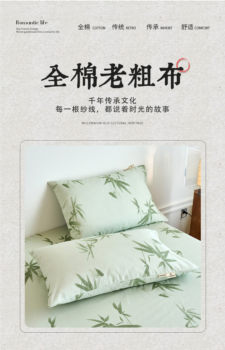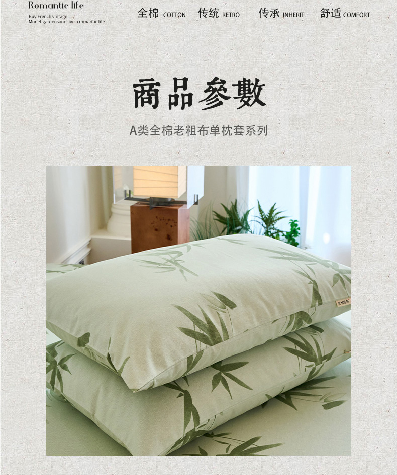 商品名称:春皖家纺 2026新款全棉老粗布普通款单枕套枕套单件 竹影(无印款)
