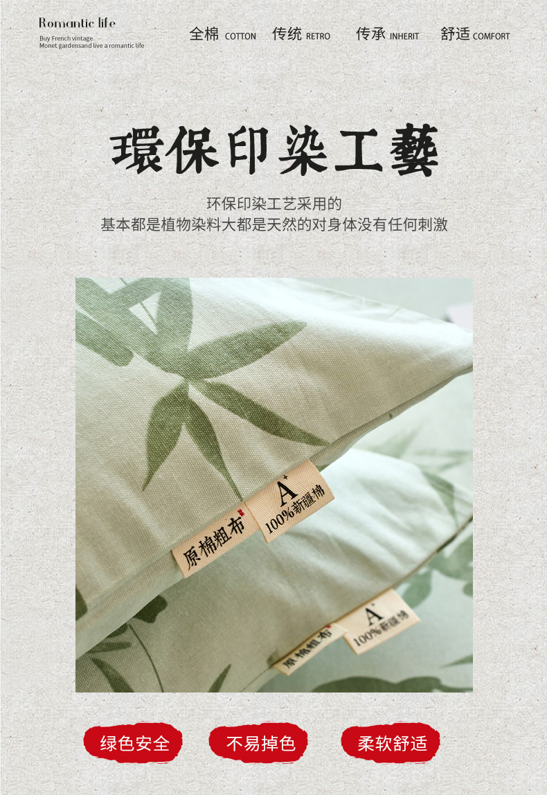 春皖家纺 2026新款全棉老粗布普通款单枕套枕套单件 竹影(无印款)