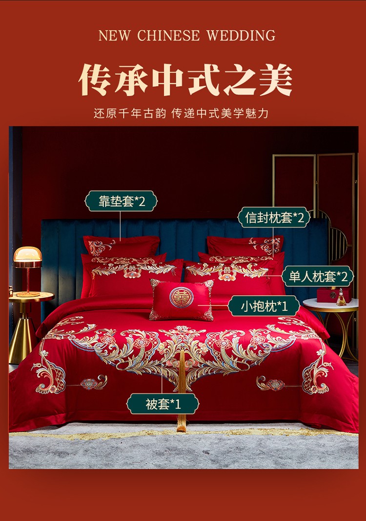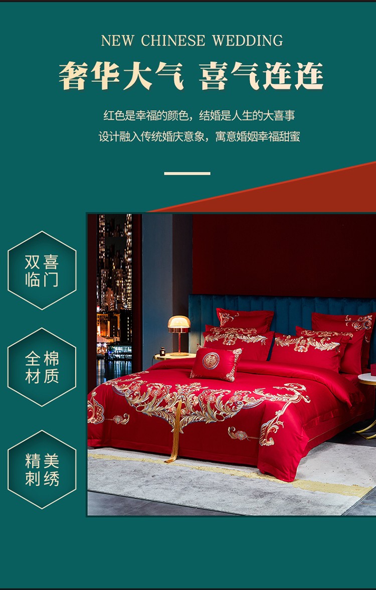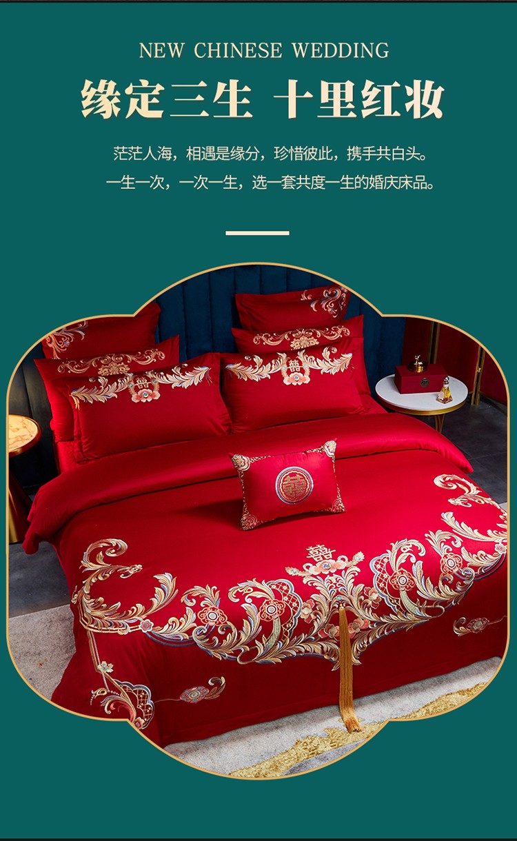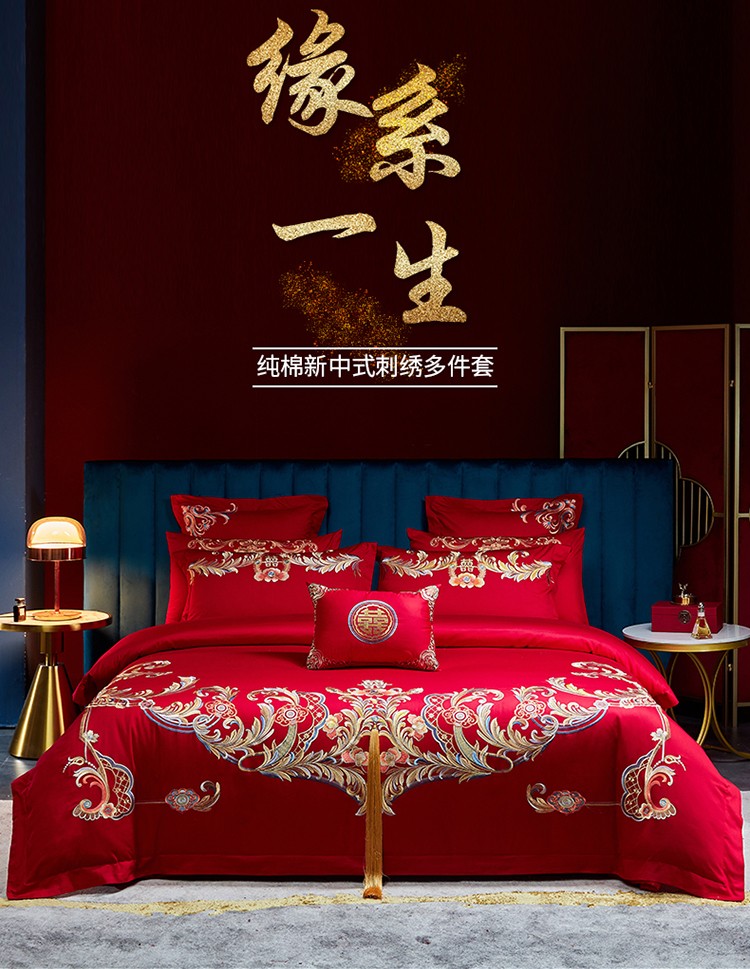 当前位置: 91家纺网 > 商品网购 > 床品套件 > 四件套 > 婚庆四件套 > 红番天 热卖款全棉婚庆刺绣四件套 缘系一生
