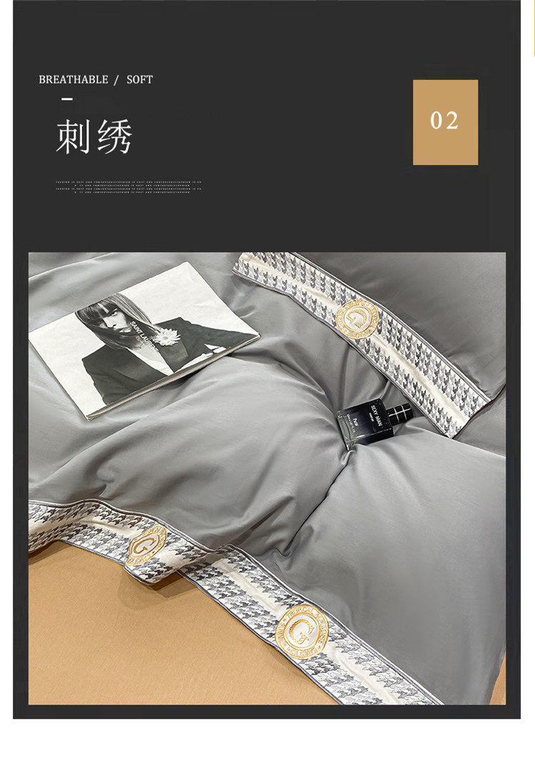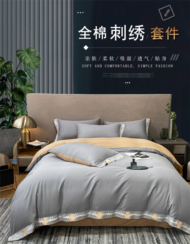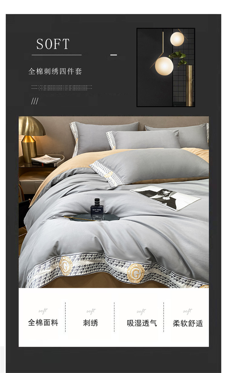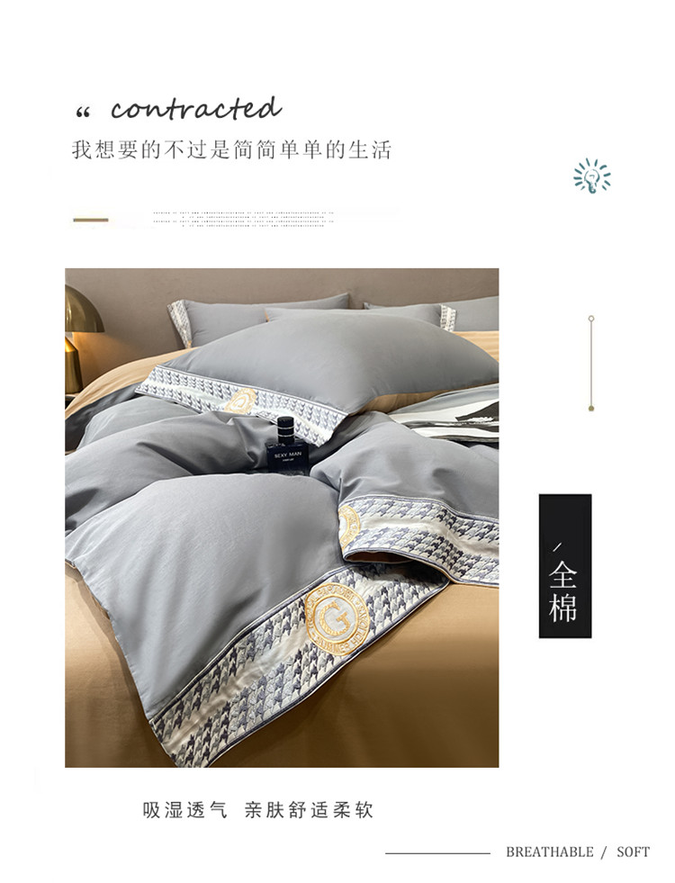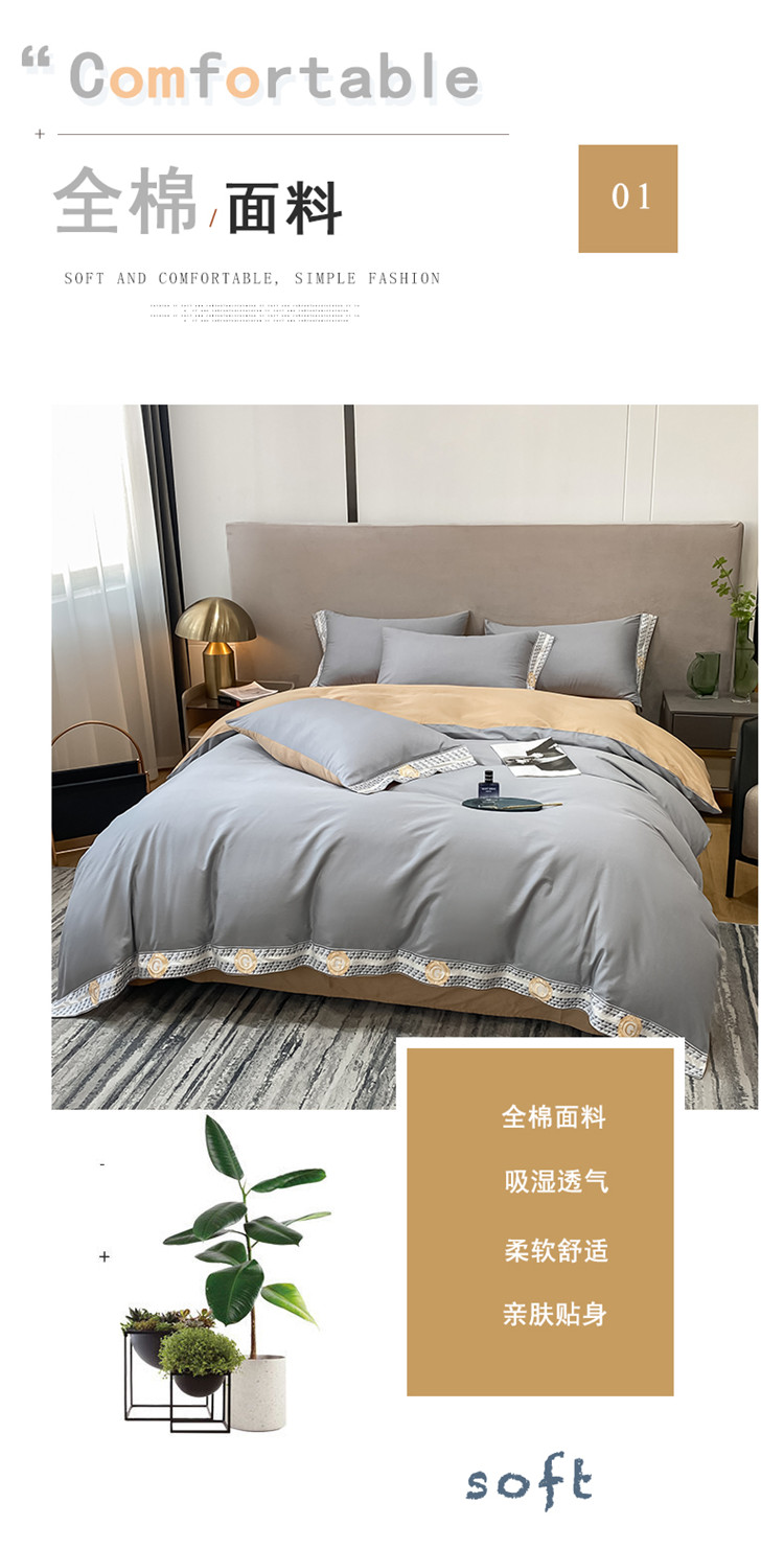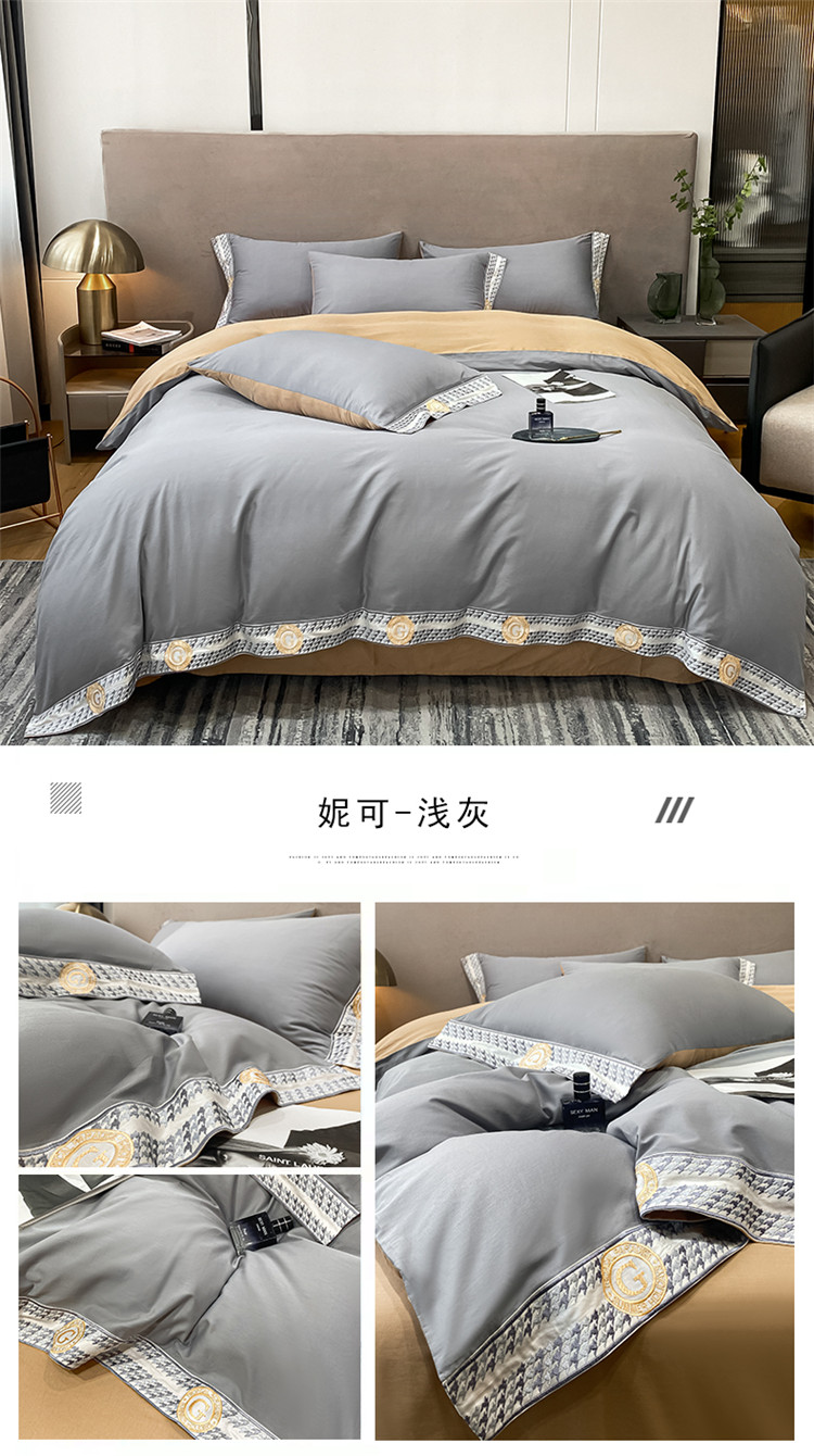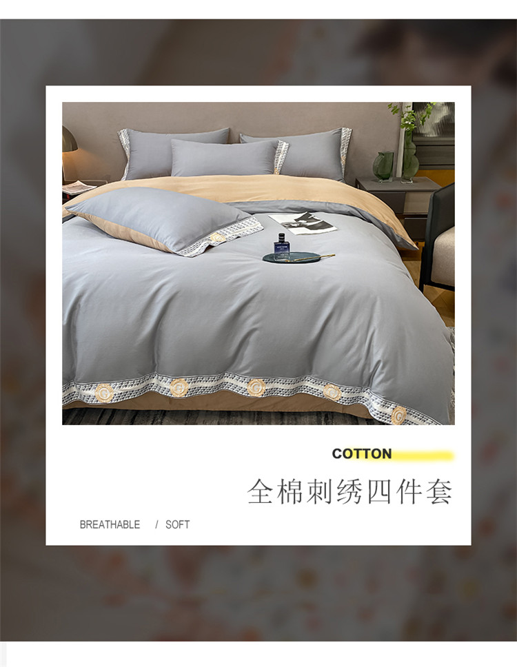 商品名称:安妮家居 2022新款全棉刺绣四件套-妮可 浅灰