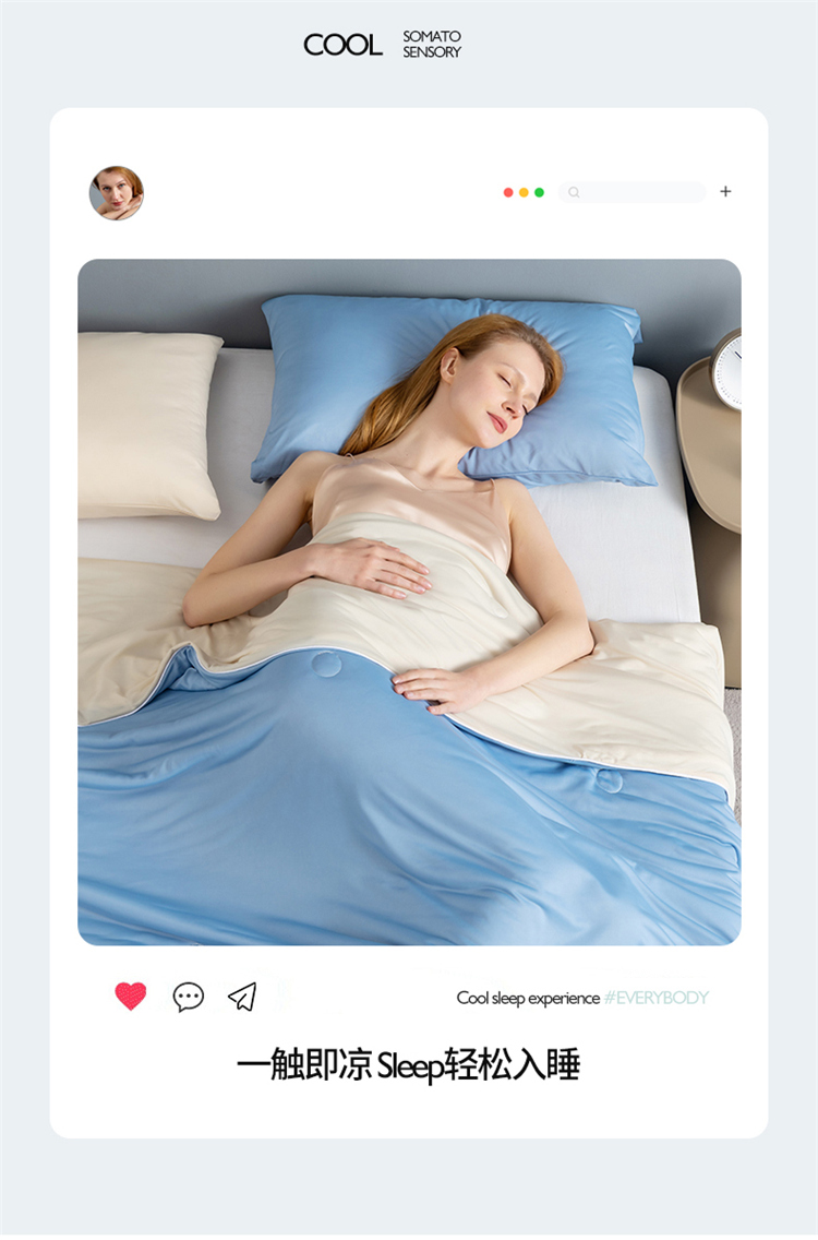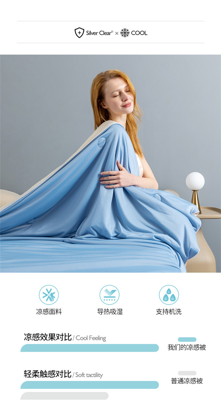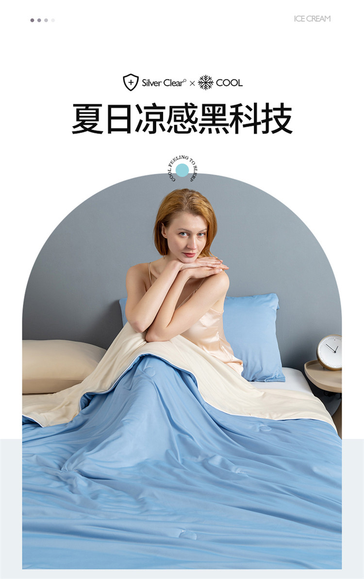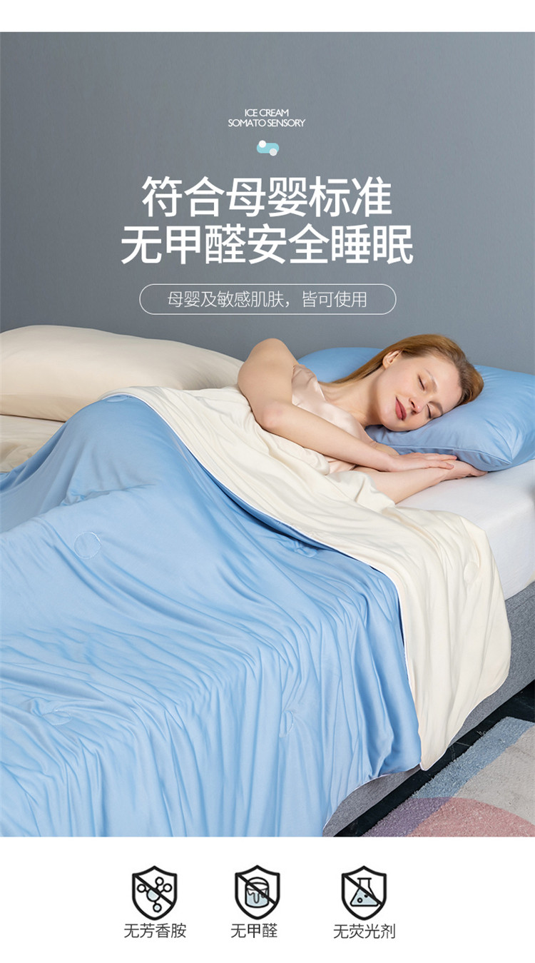 鸣升 新款100%锦纶A类凉感丝夏被冰淇淋空调被网红直播 蓝拼米