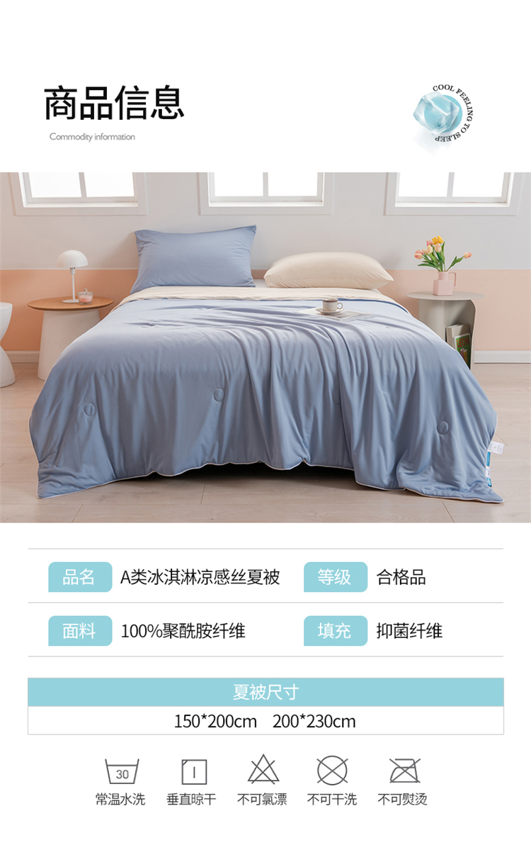 商品名称:鸣升 新款100%锦纶A类凉感丝夏被冰淇淋空调被网红直播 蓝拼米