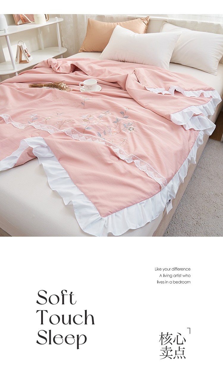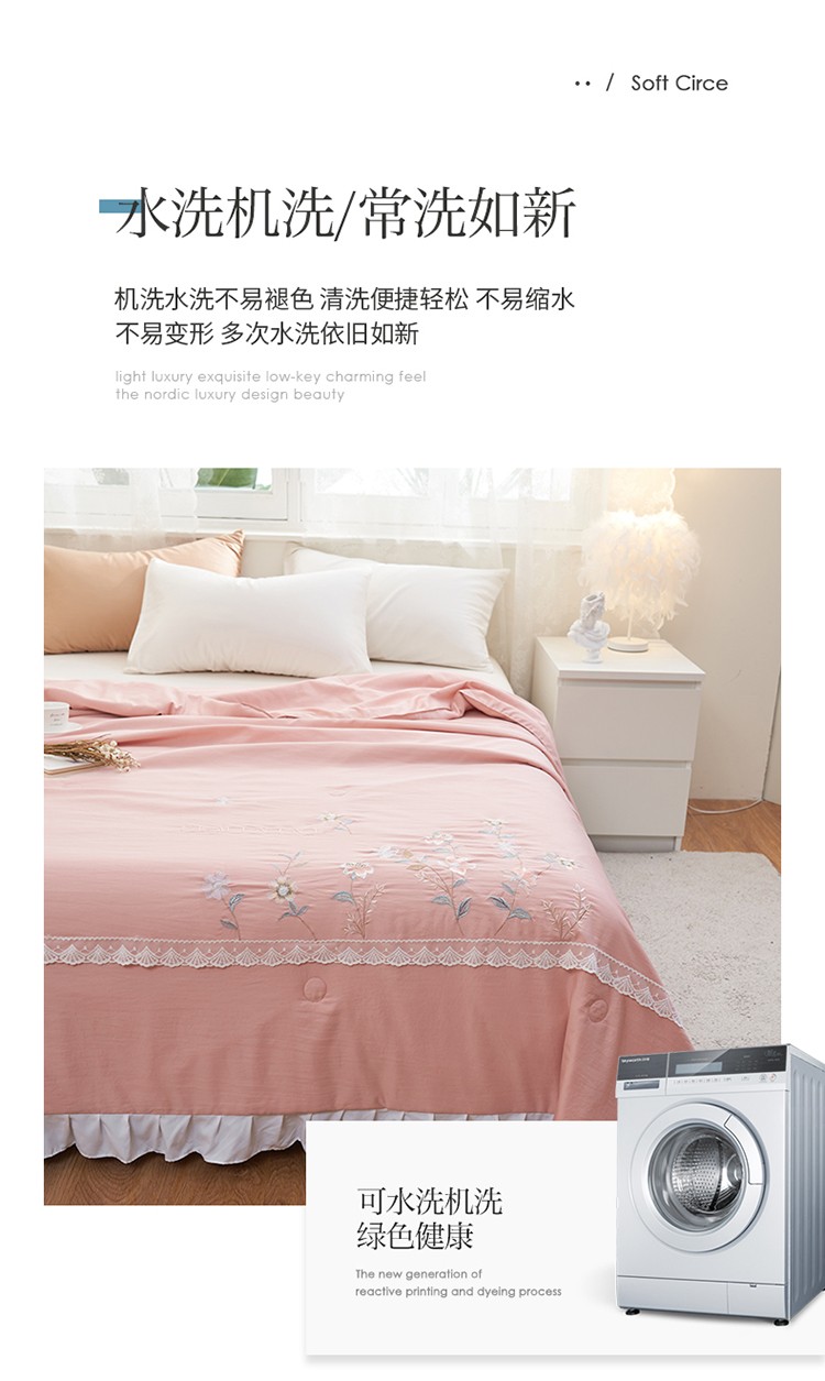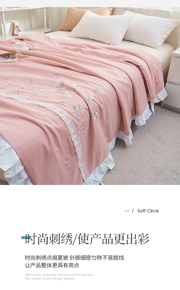 吾秀 2022新款公主款柔赛丝刺绣夏被-伊梦 伊梦-奶油粉