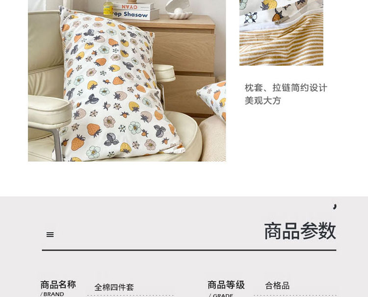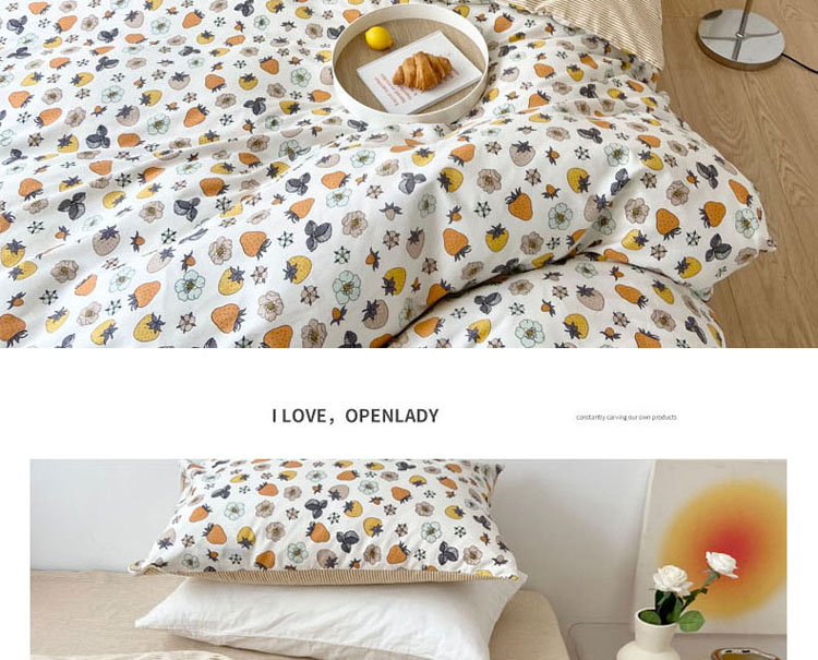 当前位置: 91家纺网 > 商品网购 > 床品套件 > 四件套 > 全棉普通四件套 > 梦家居 2022新款小清新系列全棉四件套 草莓物语