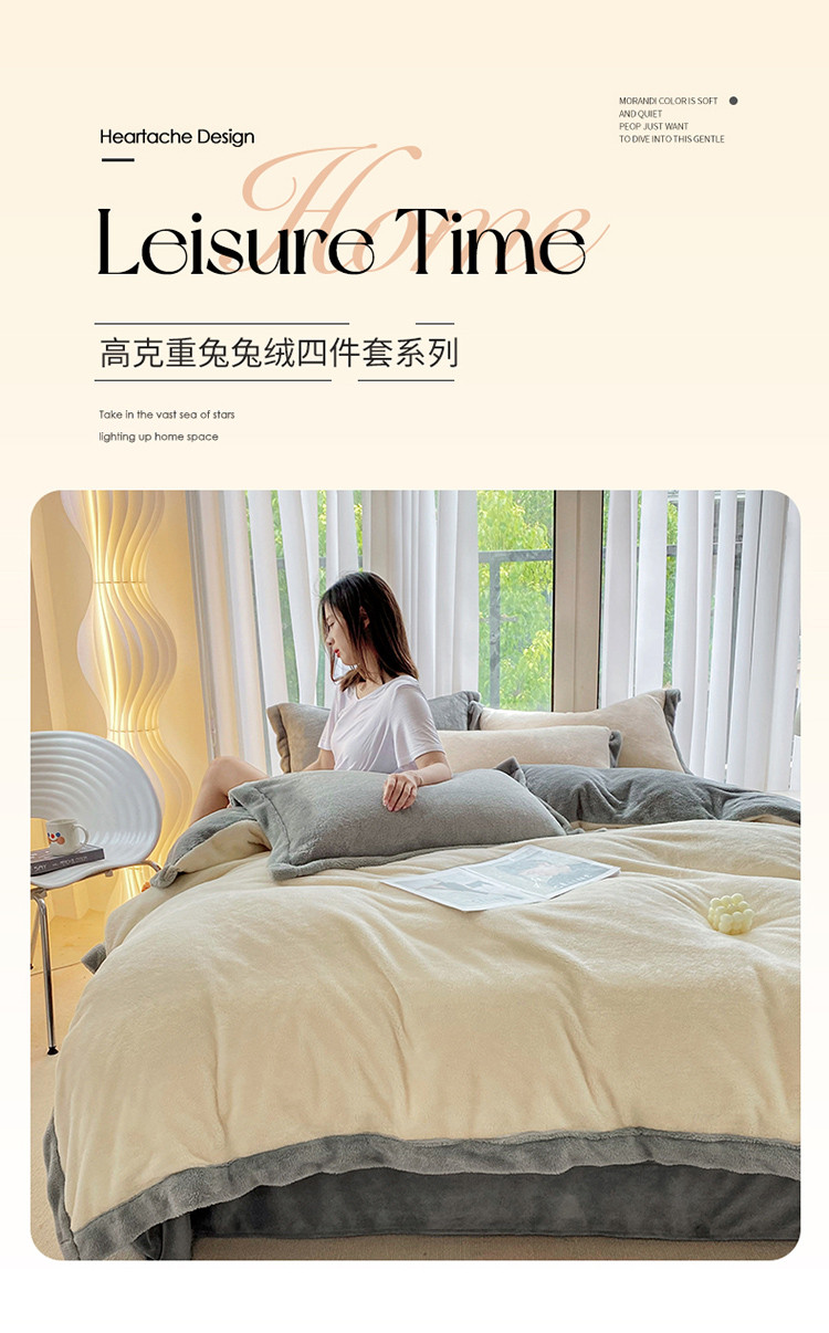 当前位置: 91家纺网 > 商品网购 > 床品套件 > 四件套 > 磨绒四件套 > 吾秀家居 2022新款兔兔绒四件套 兔兔绒-米灰