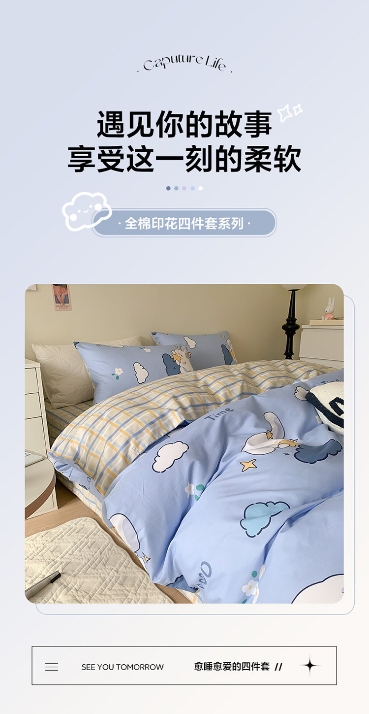 澳萝拉 2023新款全棉印花四件套会员减5元云朵兔兔