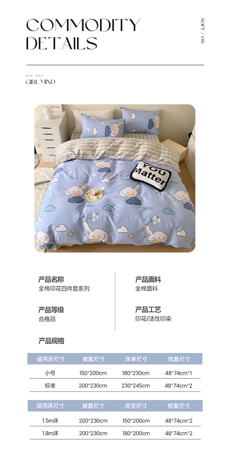商品名称:澳萝拉 2023新款全棉印花四件套会员减5元云朵兔兔