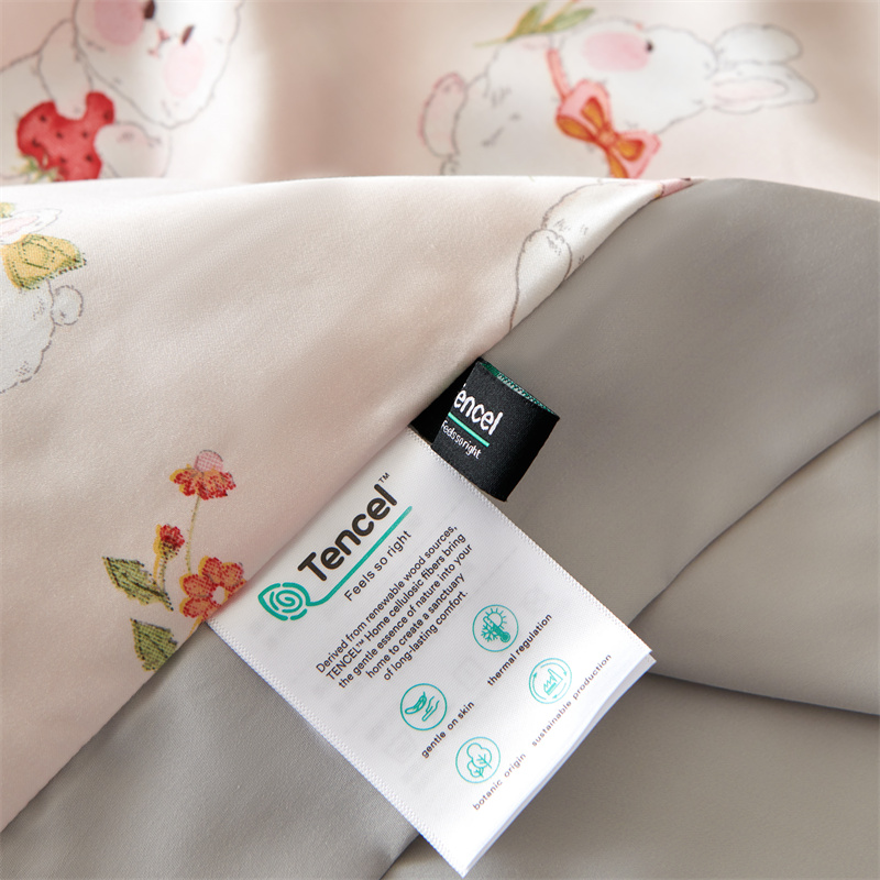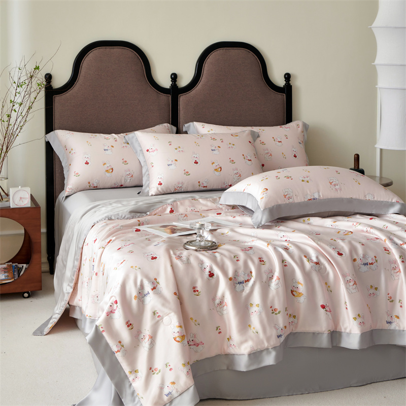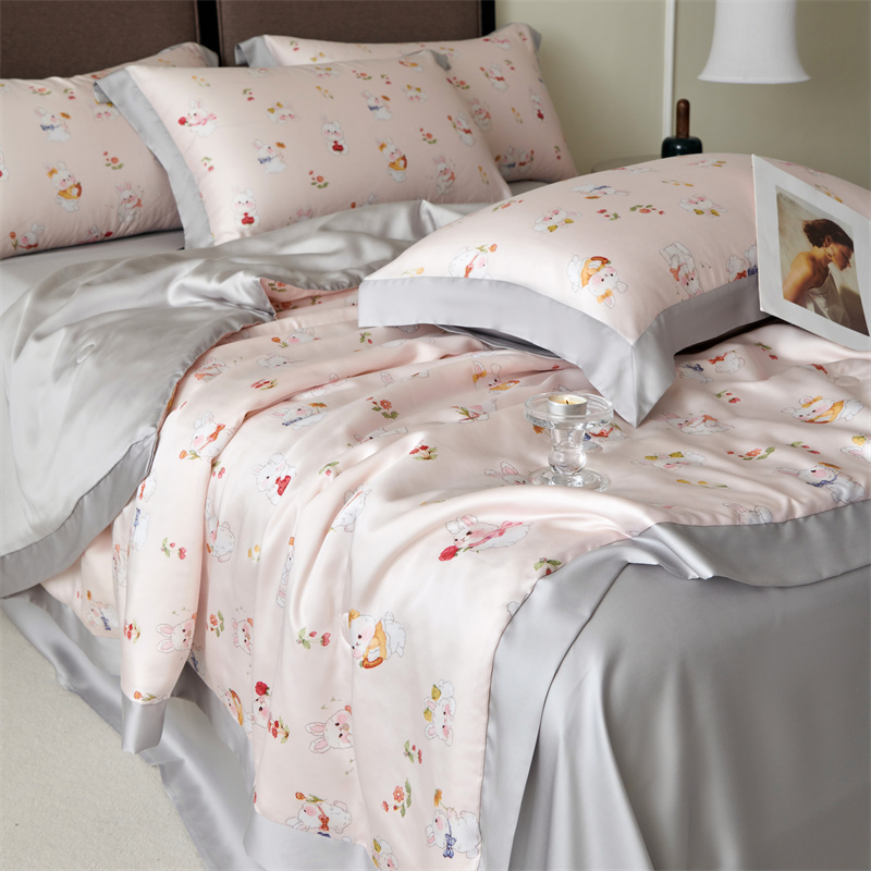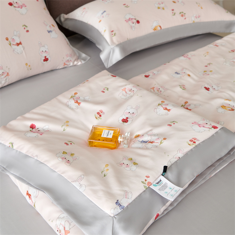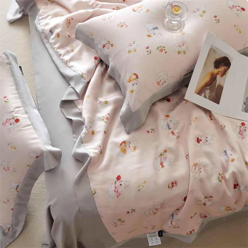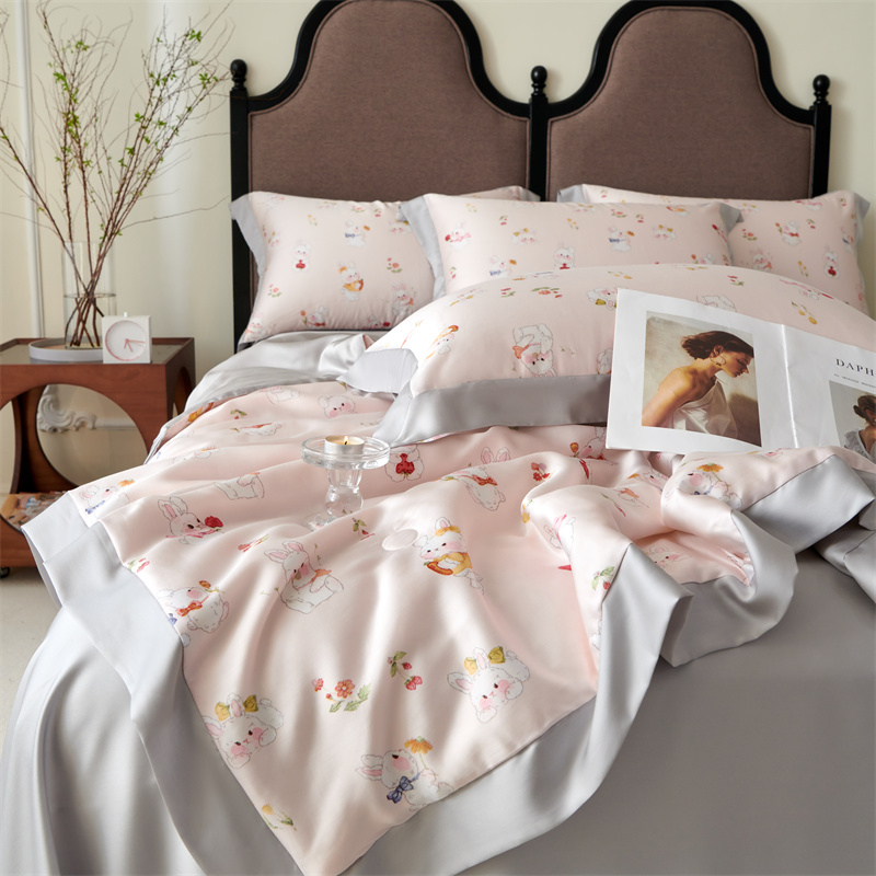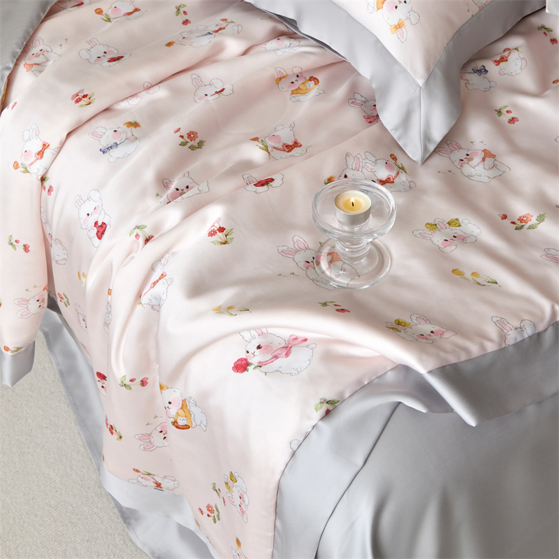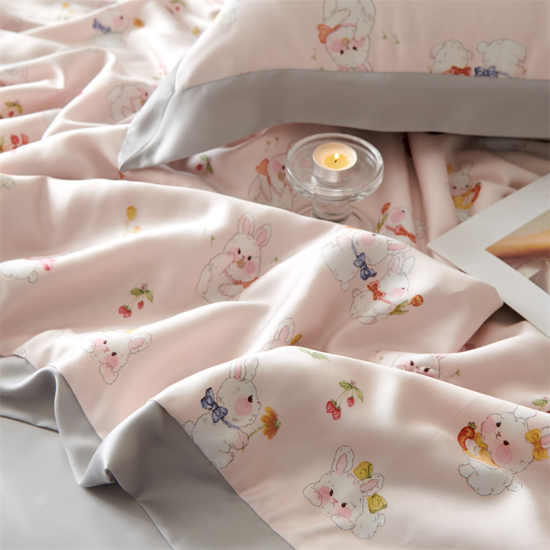 2023新款印花天丝夏被四件套 萌兔 粉