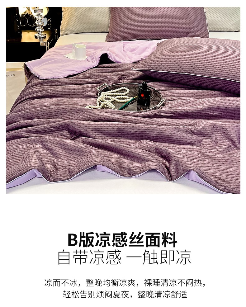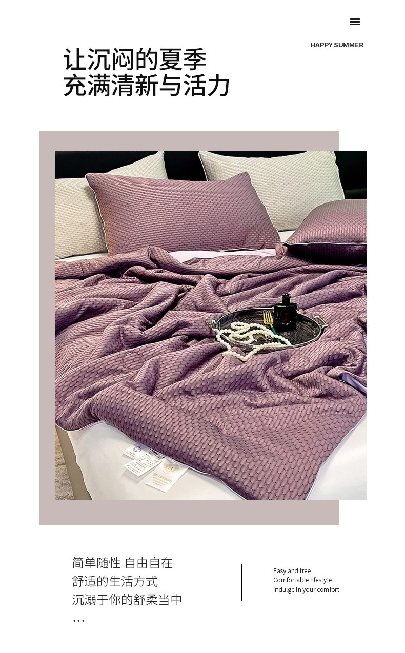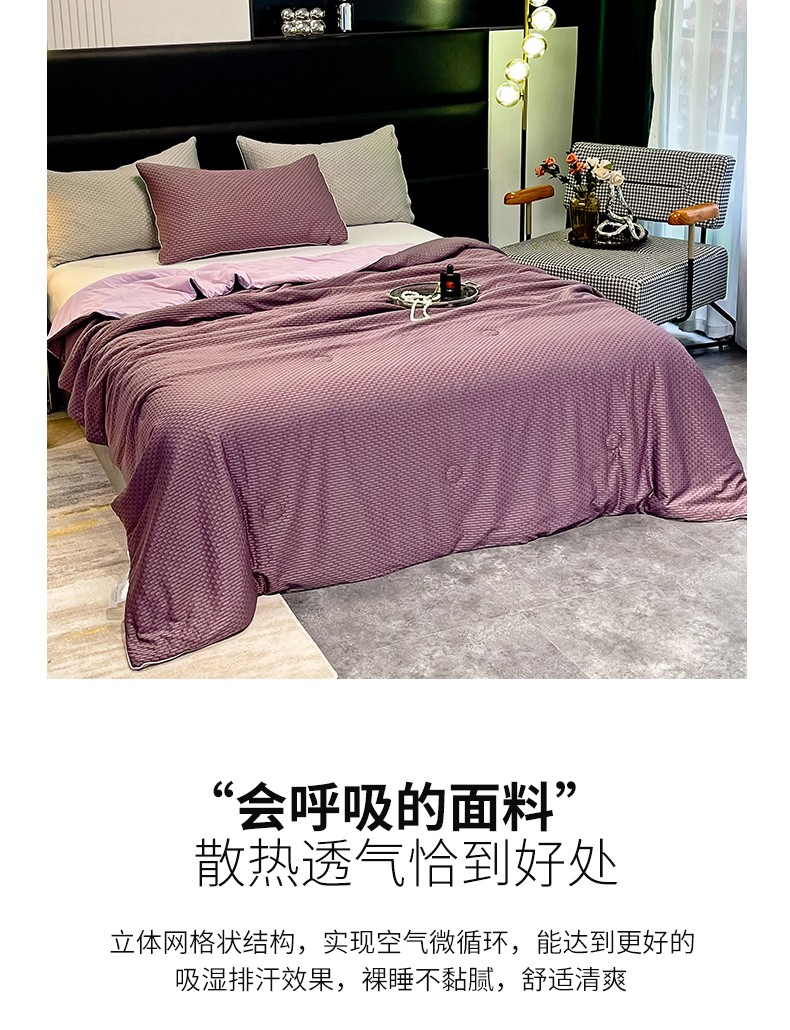 商品名称:慕晨 2023新款A类华夫格凉感丝夏被空调被夏凉被 华夫格浅紫