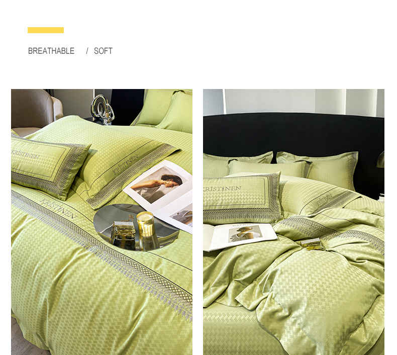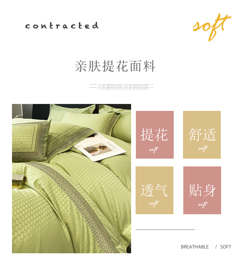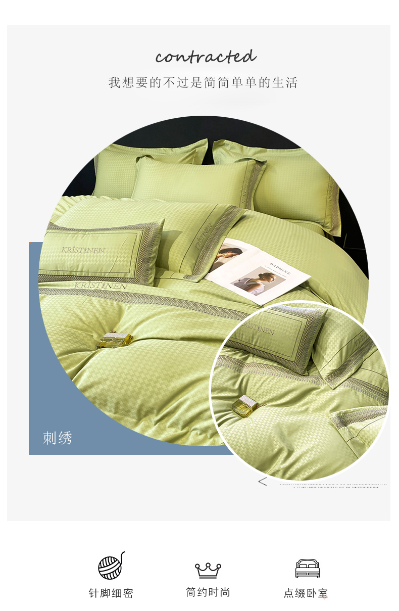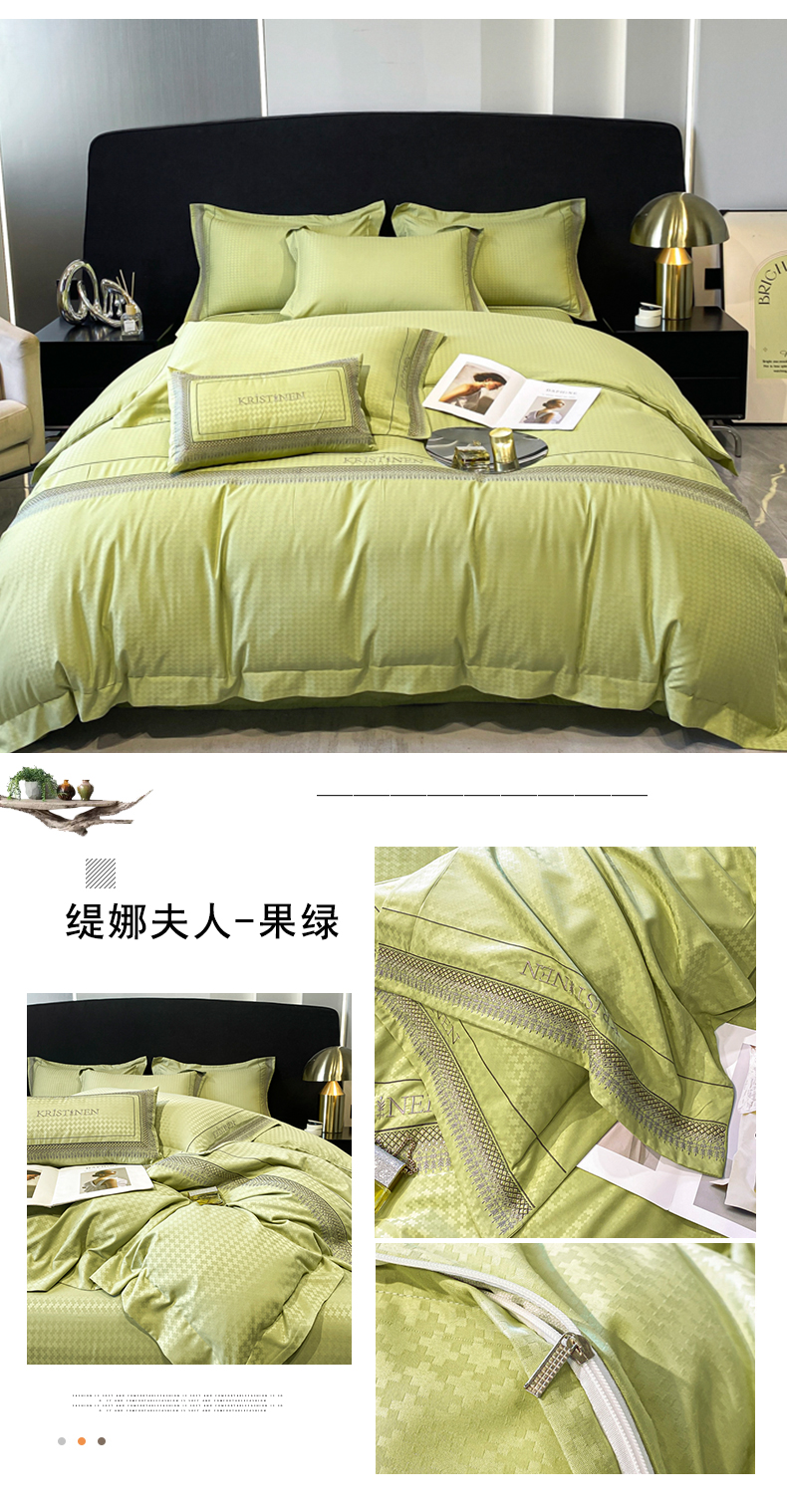 商品名称:安妮 2023新款提花刺绣四件套-缇娜夫人 缇娜夫人-果绿
