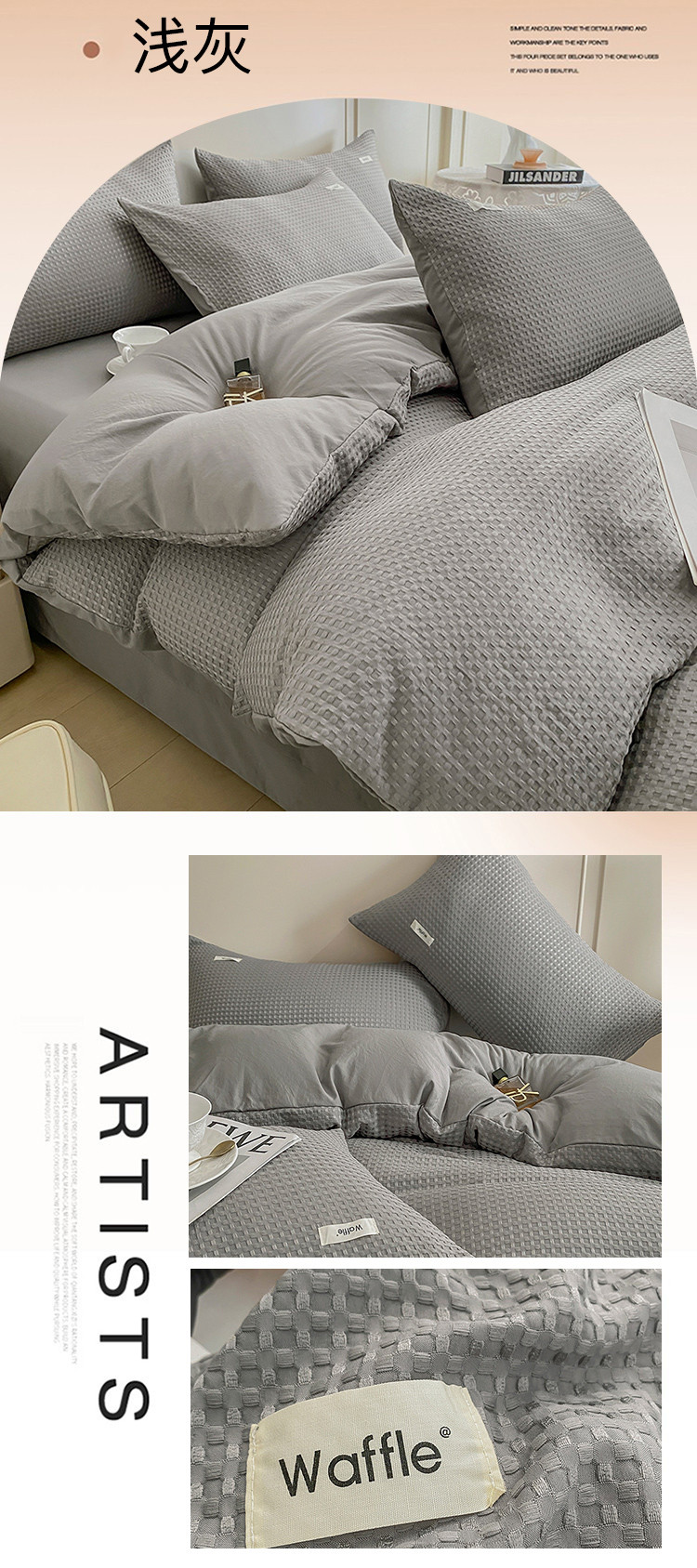 当前位置: 91家纺网 > 商品网购 > 床品套件 > 四件套 > 全棉普通四件套 > 仟网汇 2023爆款华夫格-森语系列 四件套 浅灰