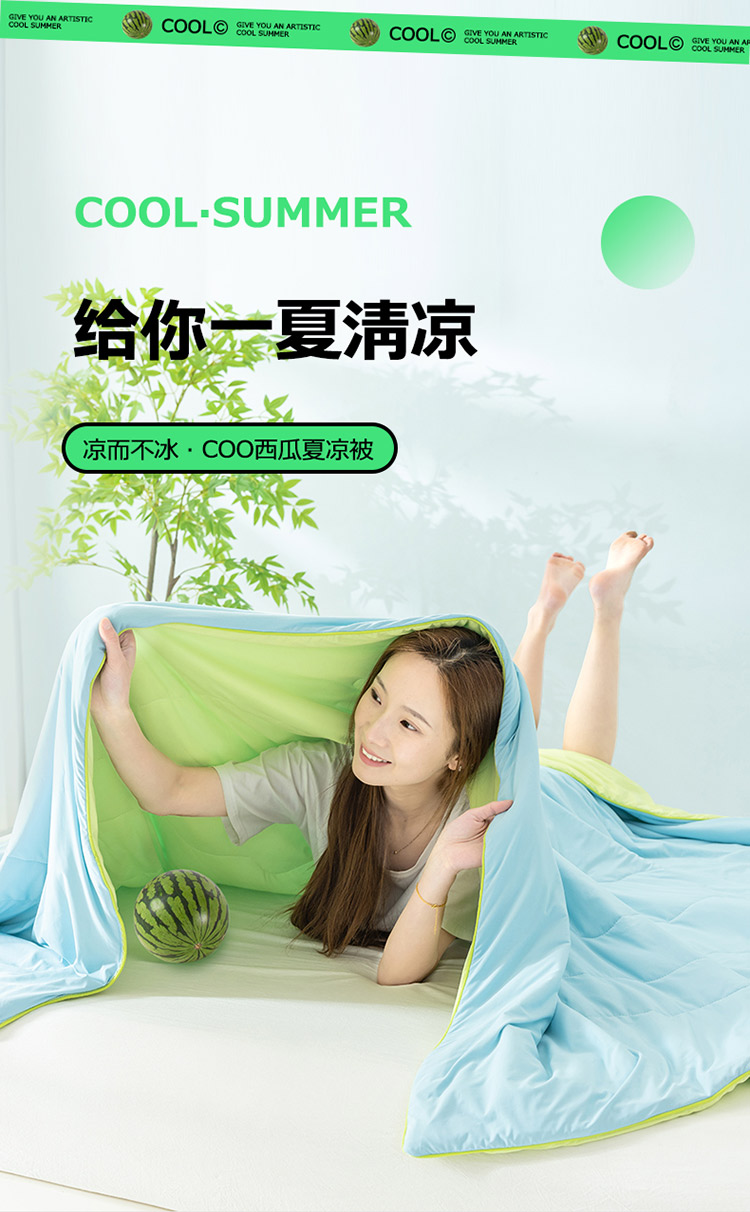 商品名称:钰博家纺 瓜瓜夏凉被 天蓝+草绿