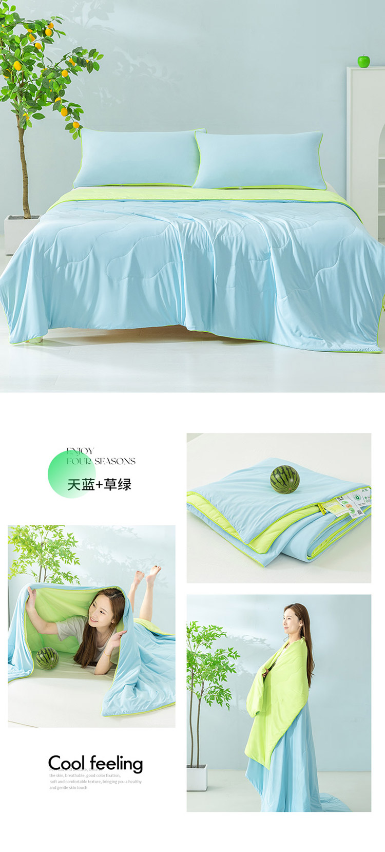 钰博家纺 瓜瓜夏凉被 天蓝+草绿