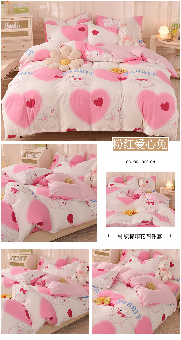 当前位置: 91家纺网 > 商品网购 > 床品套件 > 四件套 > 针织棉四件套 > 甜之梦 2025新款针织棉印花四件套 粉红爱心兔