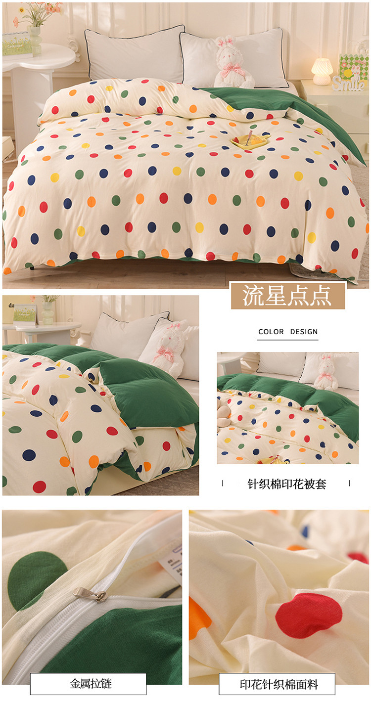 • 91家纺网 家纺一手货源 找家纺 甜之梦 2025新款针织棉印花单品被套 流星点点