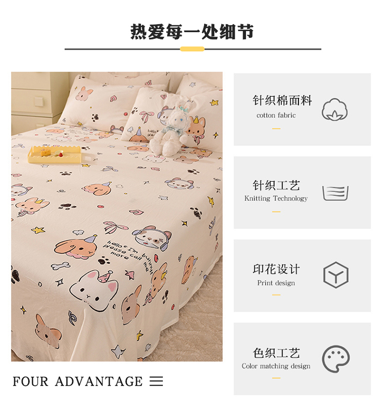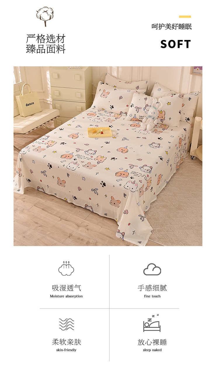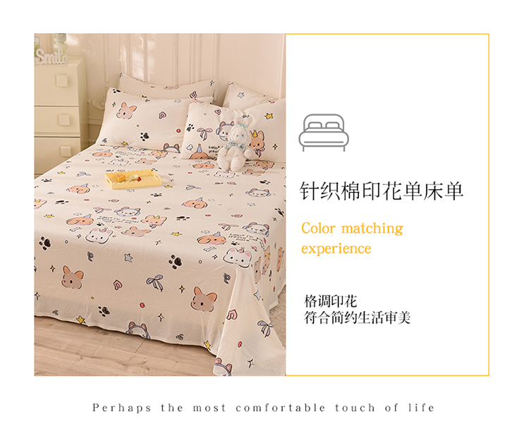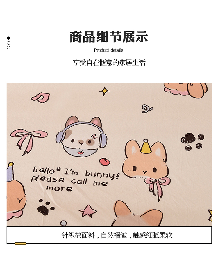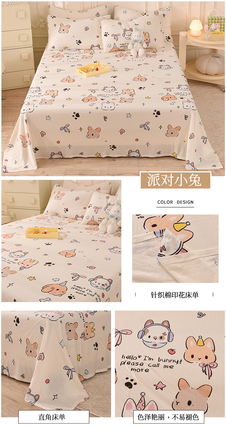 商品名称:甜之梦 2025新款针织棉印花单品床单 派对小兔
