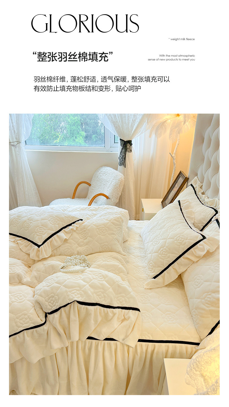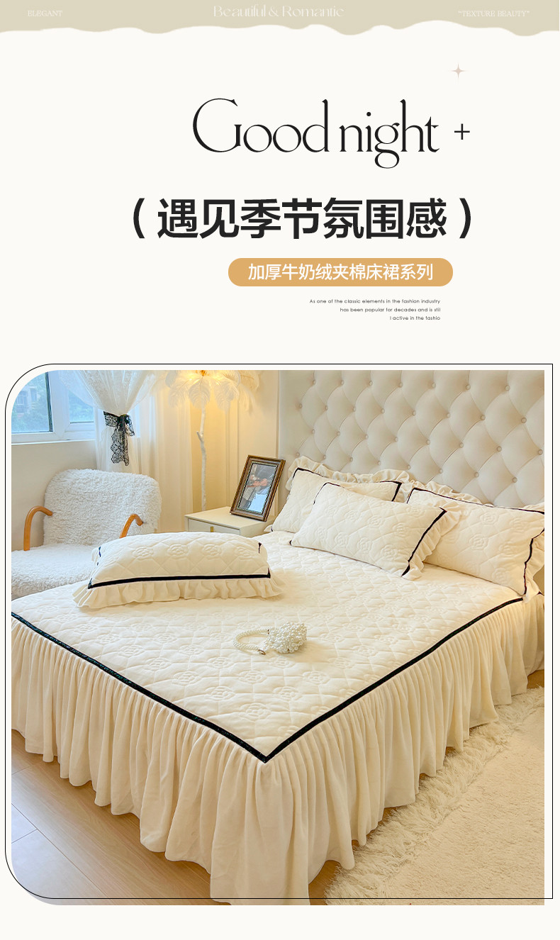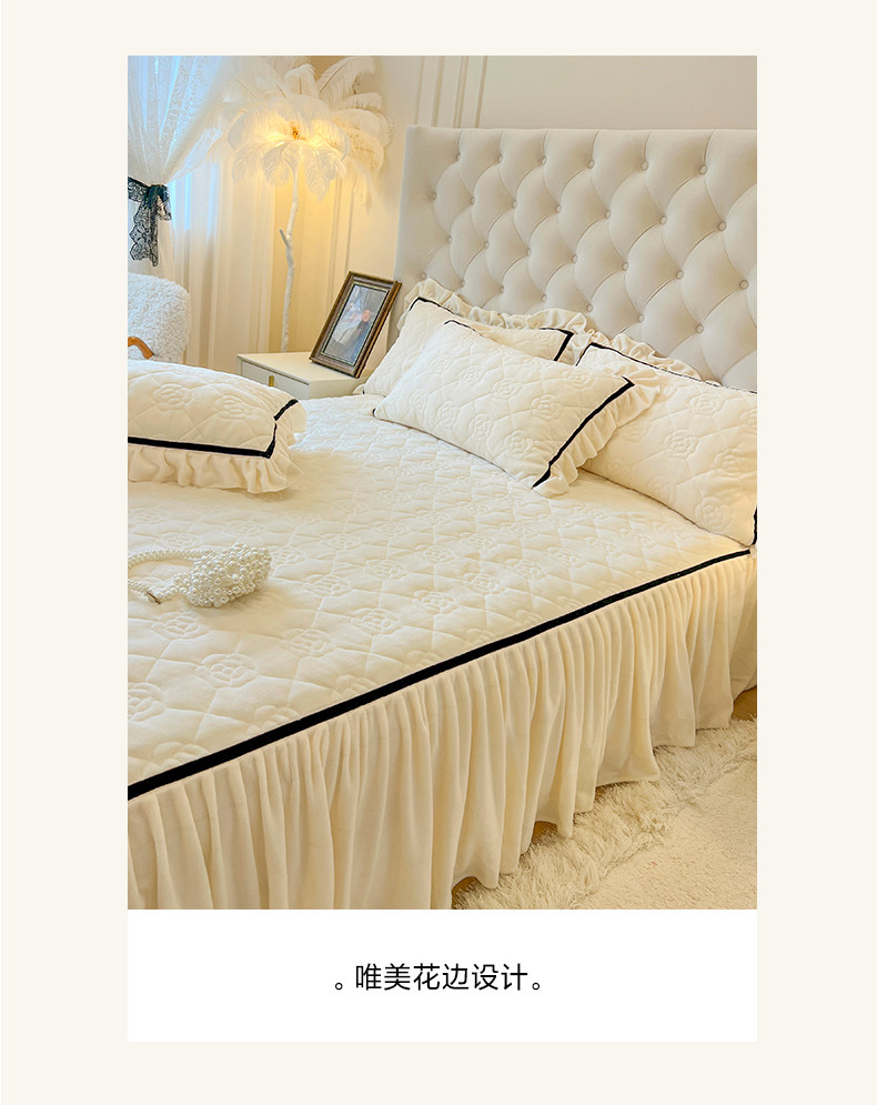 商品名称:麒豆豆 2023新款高克重加厚保暖牛奶绒眷恋系列单床裙 眷恋-元气白