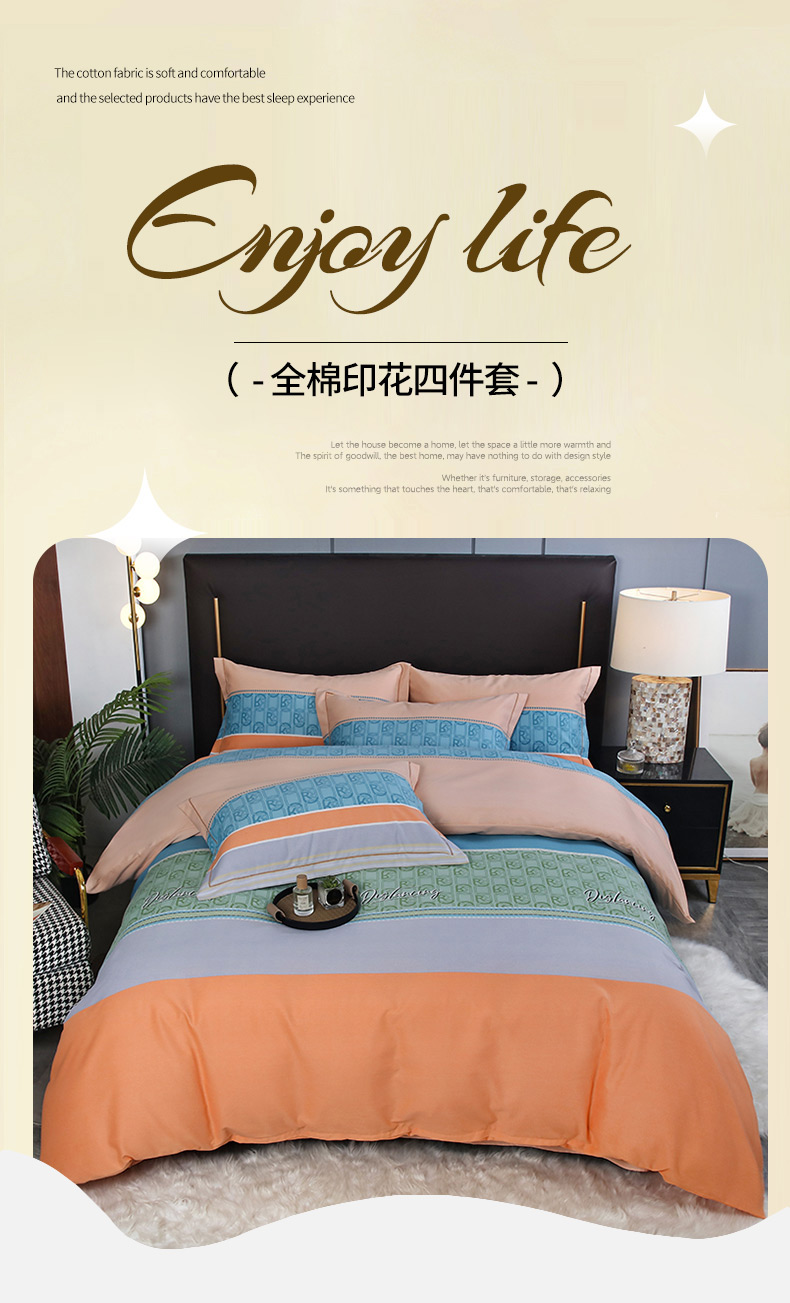 商品名称:金纱玉纺家纺 2024新款加厚AB版四件套 铂金时代-桔