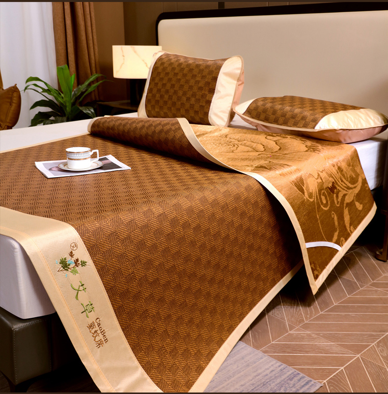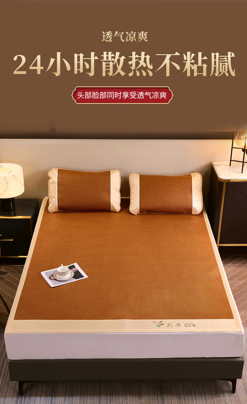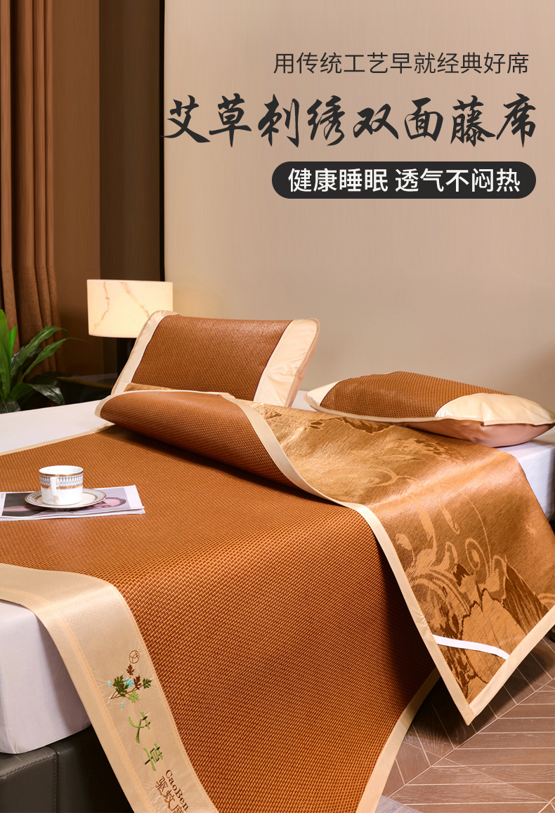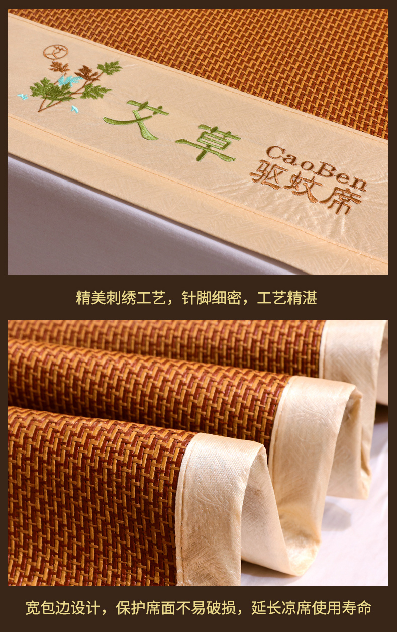 (总)青雅席业 2025新款艾草刺绣双面驱蚊御藤席-正面藤席-背面冰丝双面两用