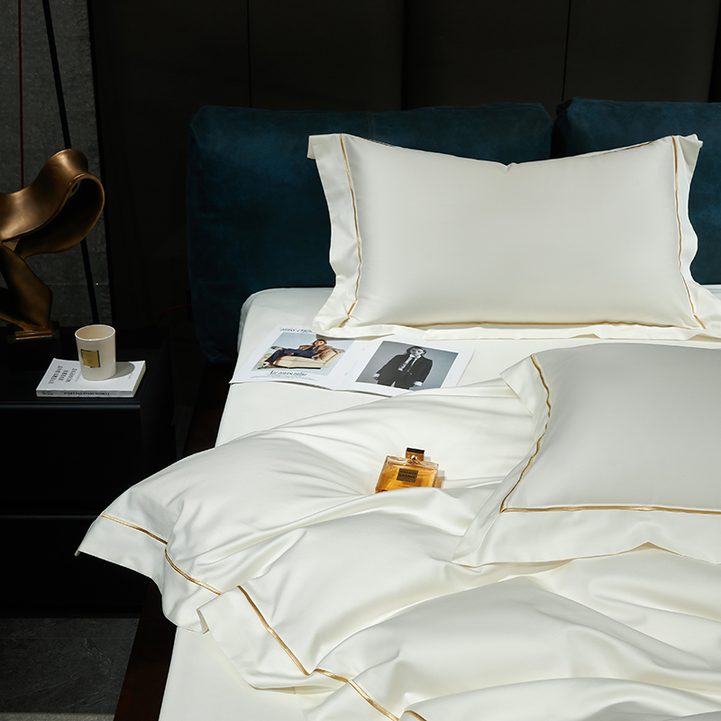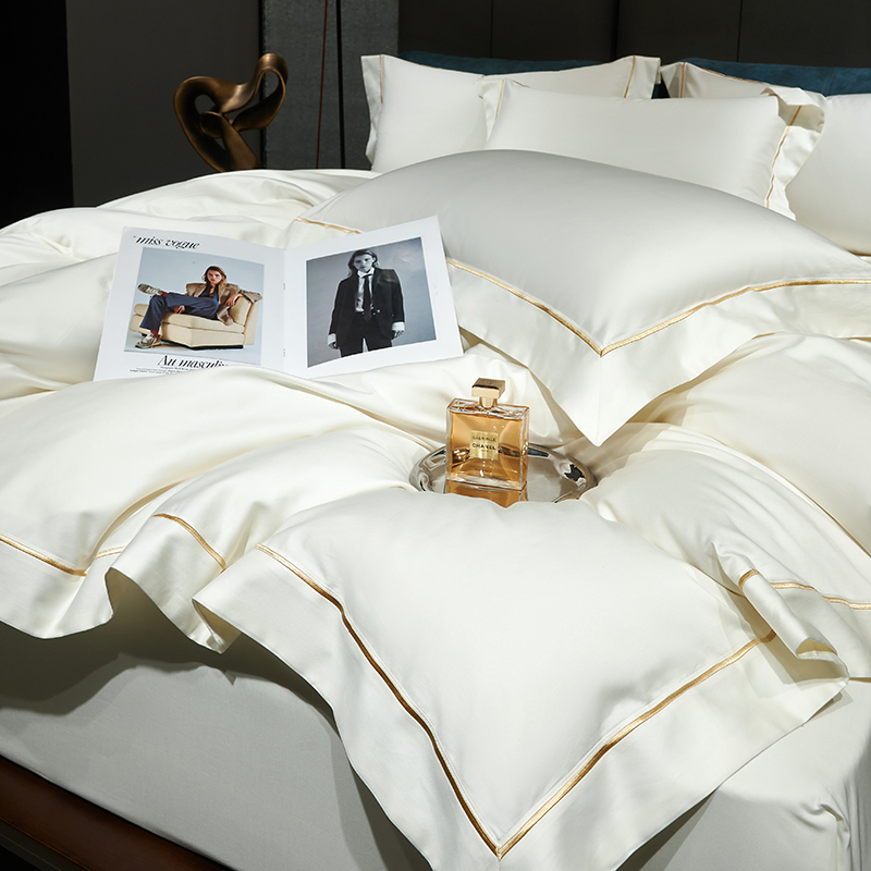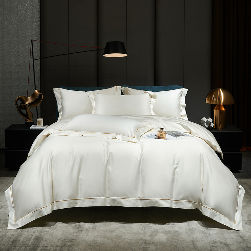 总榻尚家居 2023新款格瑞斯系列100贡缎长绒棉四件套工艺款四件套,格瑞斯紫,格瑞斯白,格瑞斯灰,格瑞斯蓝
