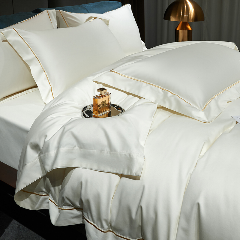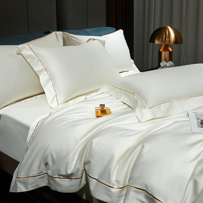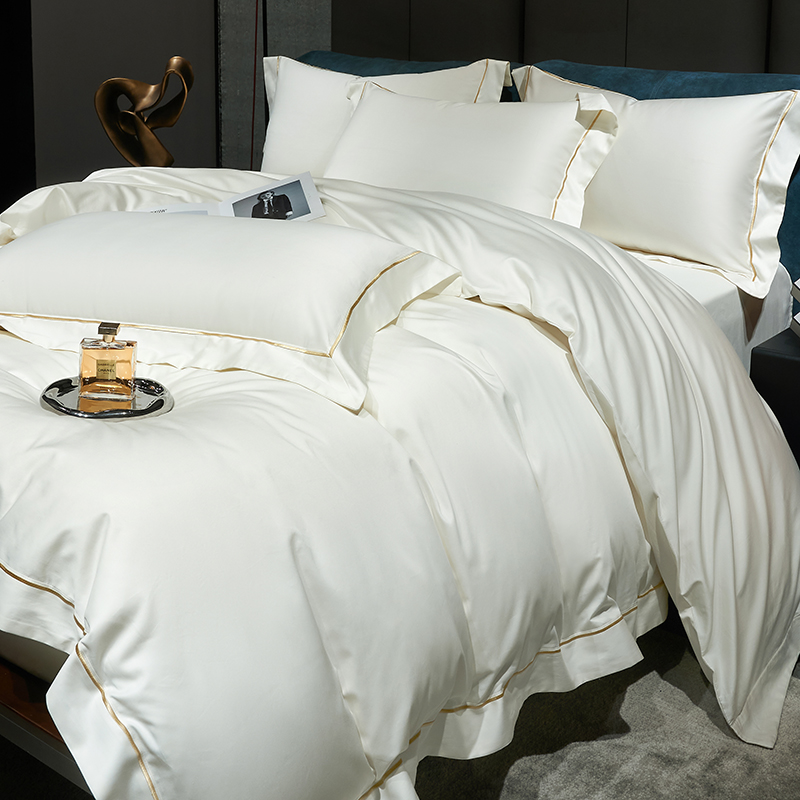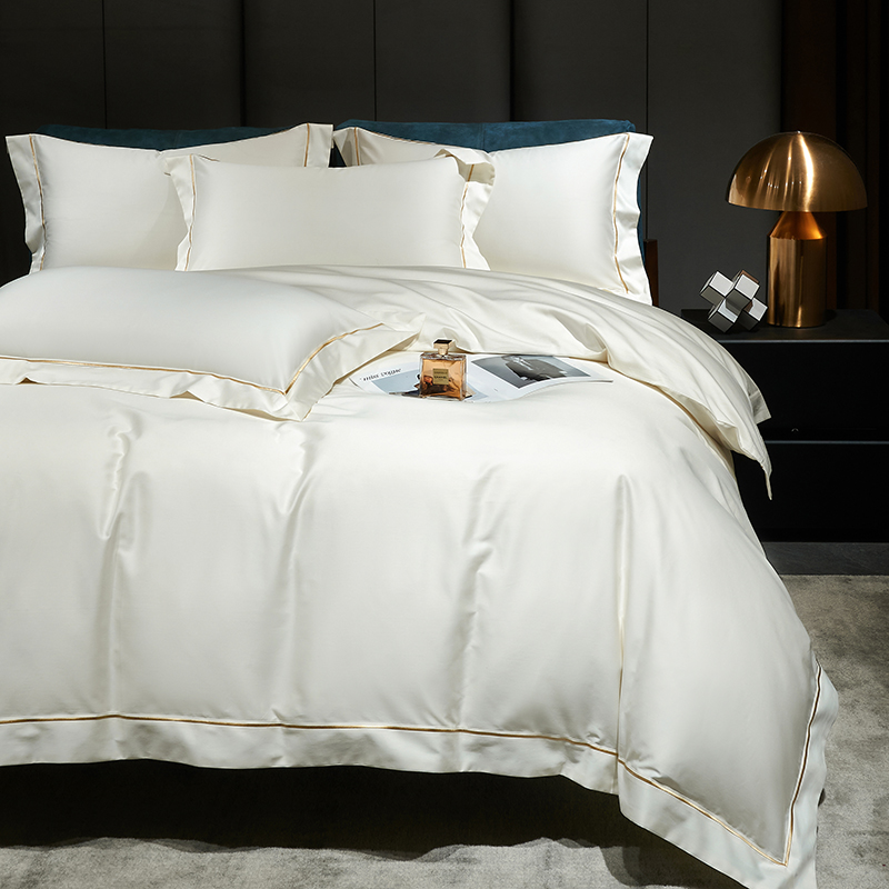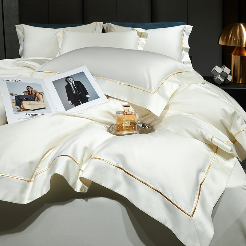 (总)榻尚家居 2023新款极简促销打孔长绒棉四件套,湖兰 -本白,芥末 -米黄,香紫-深灰