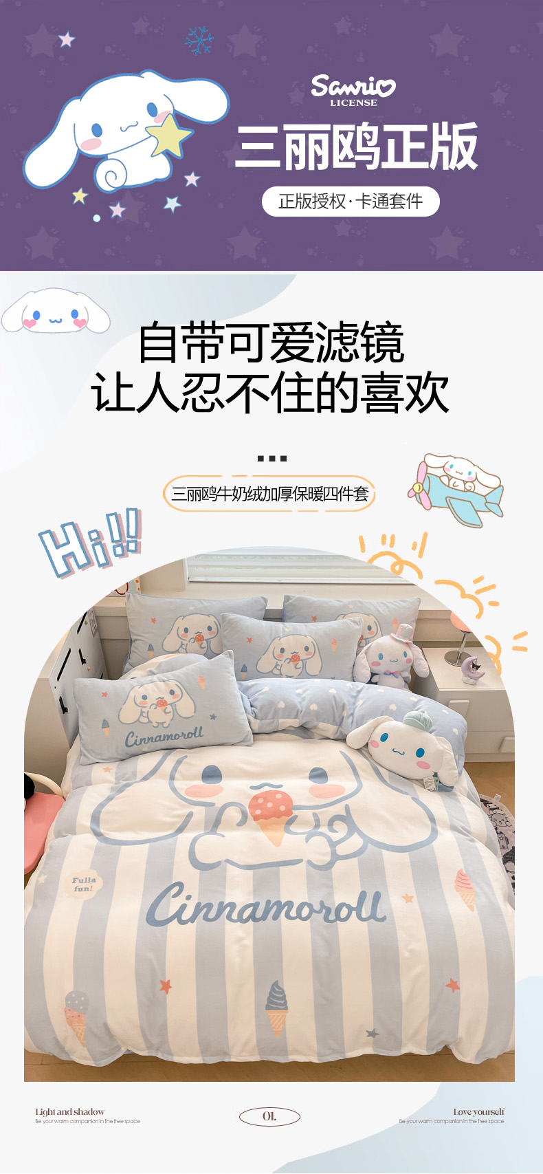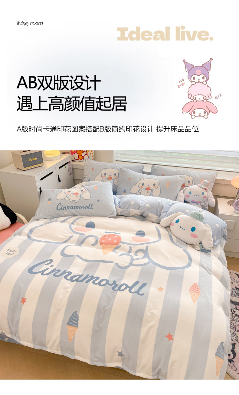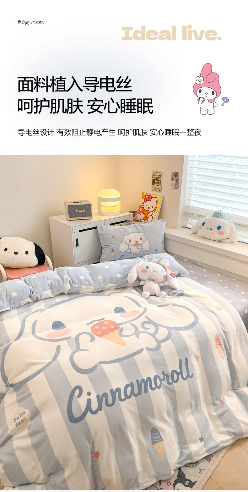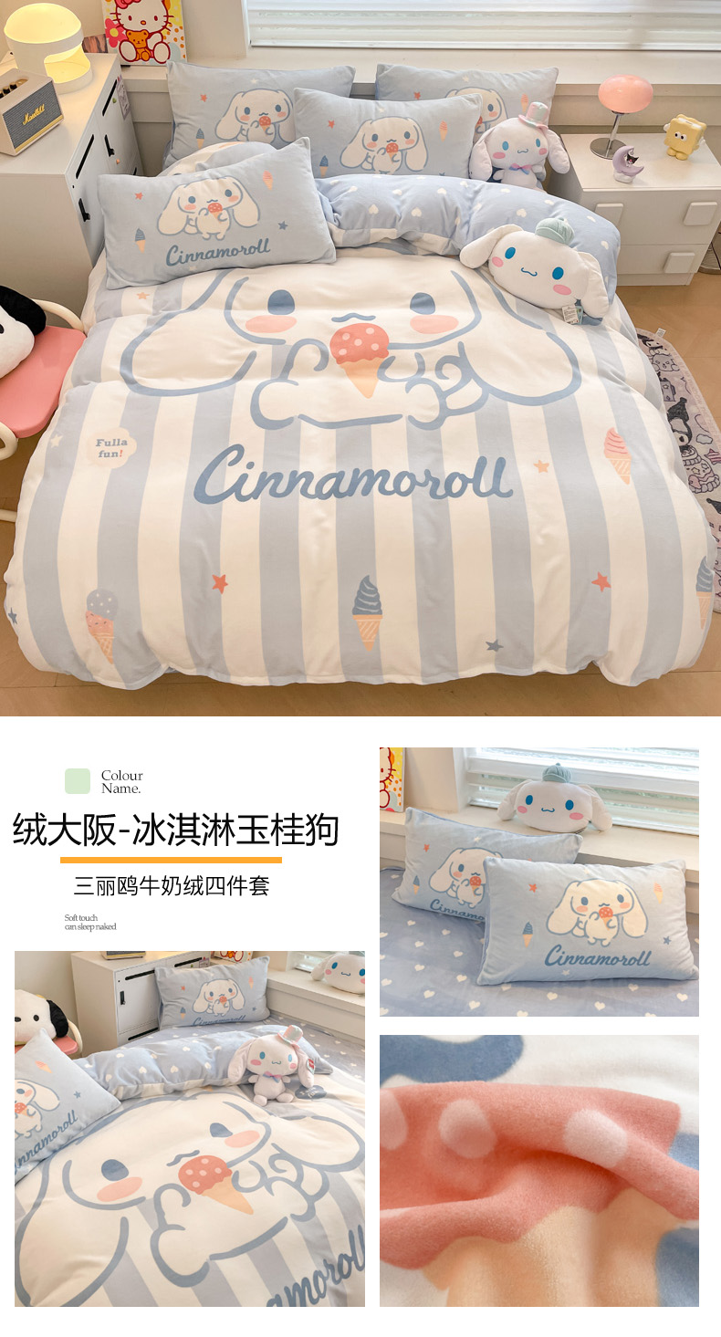 当前位置: 91家纺网 > 商品网购 > 床品套件 > 四件套 > 牛奶绒四件套 > 暮思 2024新款正版授权三丽鸥大阪数码印花高克重加厚保暖牛奶绒四件套 绒大阪-冰淇淋玉桂狗