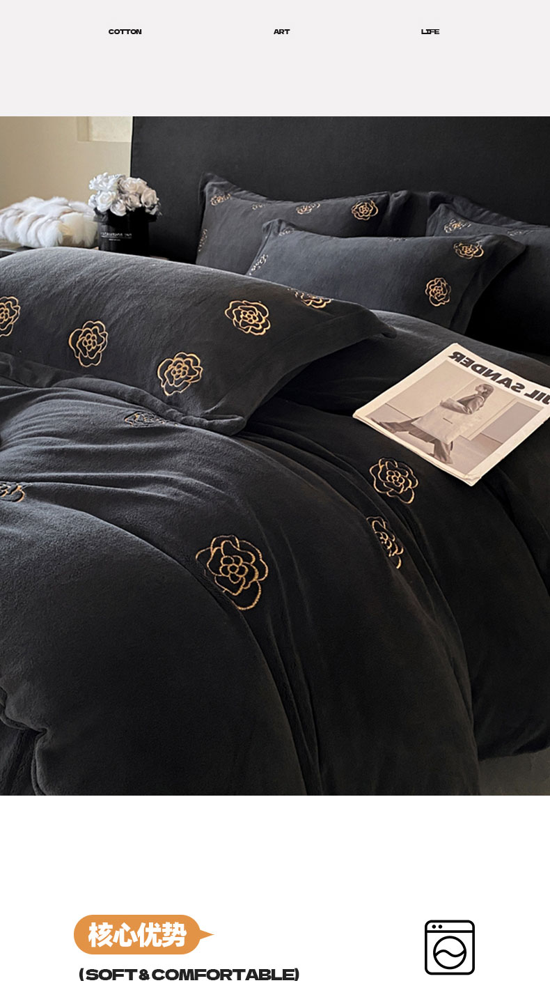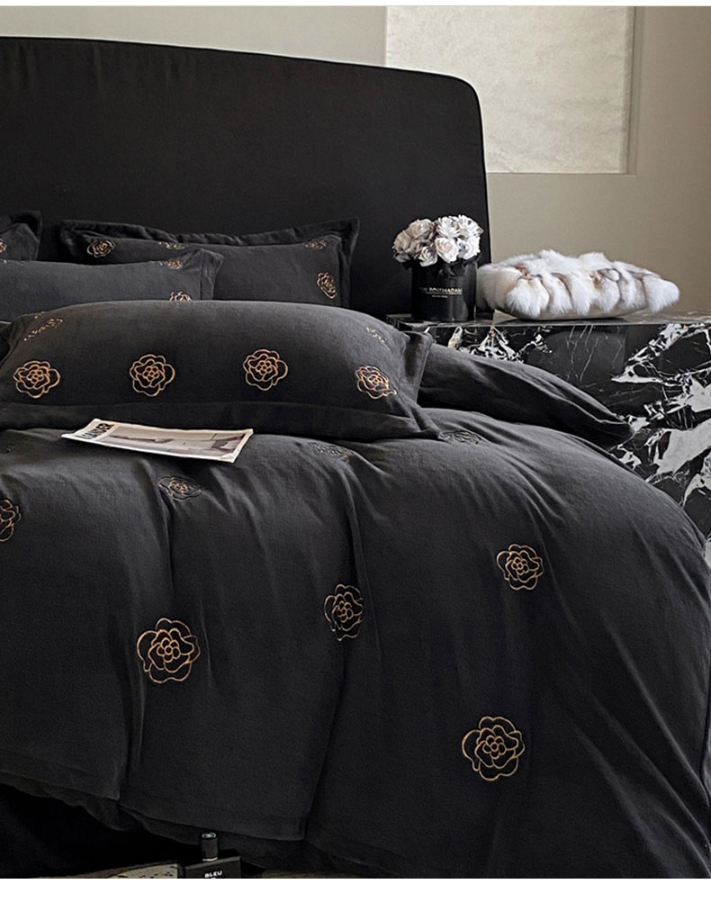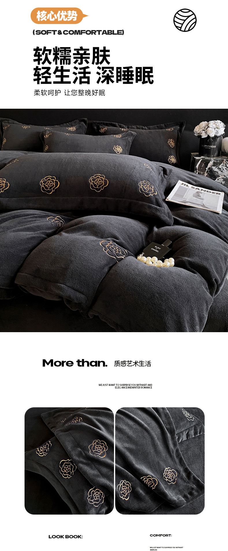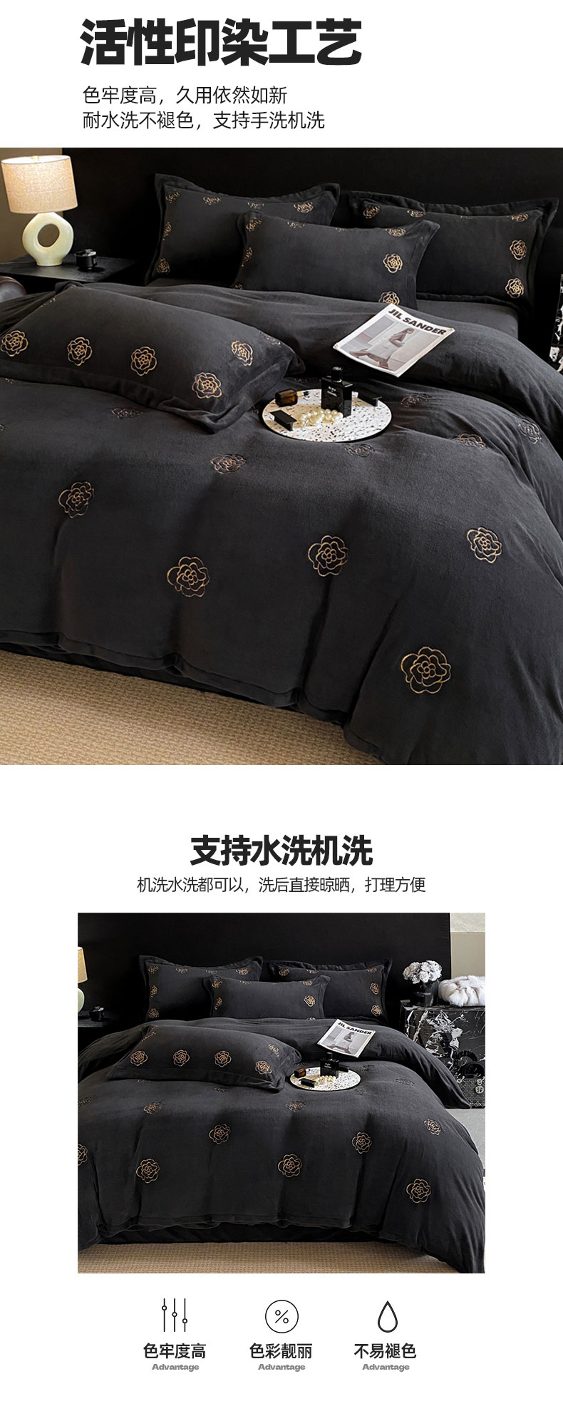 当前位置: 91家纺网 > 商品网购 > 床品套件 > 四件套 > 牛奶绒四件套 > 你好美丽 2025新款A类200克牛奶绒山茶花刺绣四件套 山茶花黑