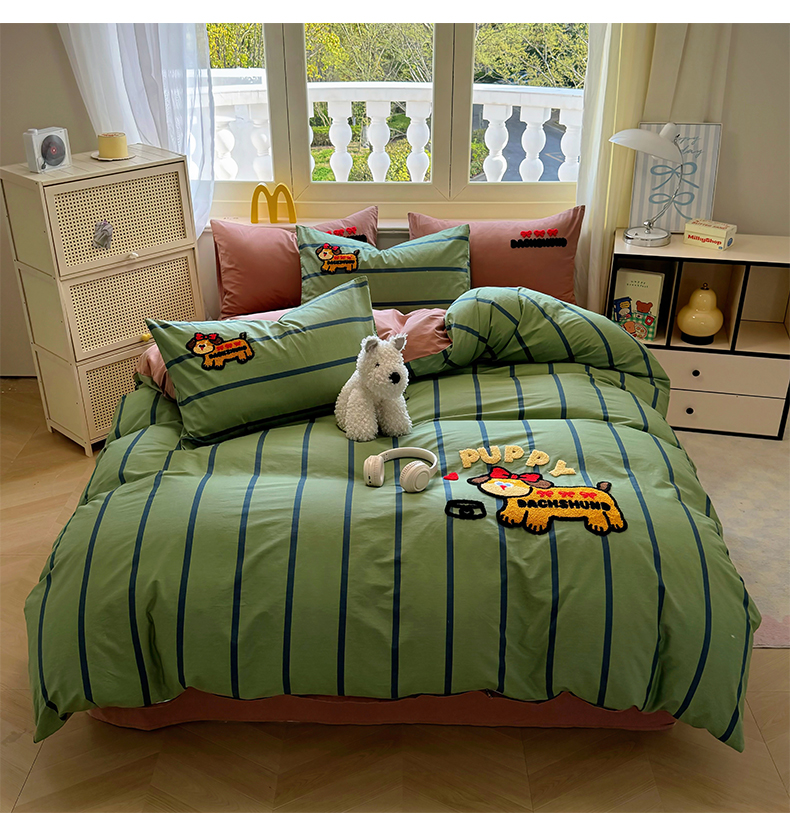 (总)启程家纺 2026春夏新款全棉纯棉色织水洗棉四件套,大布丁-灰,大布丁-粉,大布丁绿,米亚兰,土耳其,威特浅蓝,麦田-蓝,麦田-绿,秋田5号,秋田-蓝,松墨,爱格-粉,爱格-蓝,缤纷格-灰,初遇,简格兰