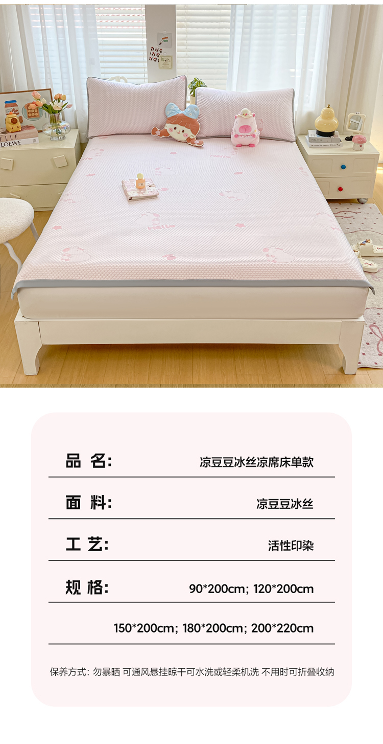 商品名称:梦初语 2025夏季新款冰丝凉感豆豆凉席床垫夏天学生宿舍可水洗单人席子凉席-直播爆款 卡皮巴拉-粉