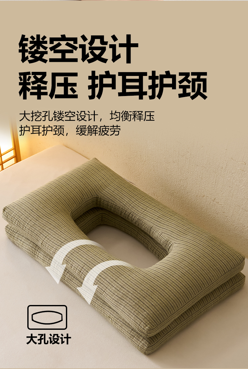 (总)乐可 2025新款4D条纹护耳枕枕头枕芯