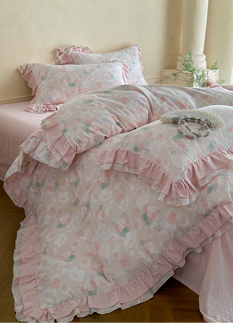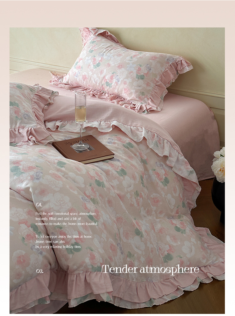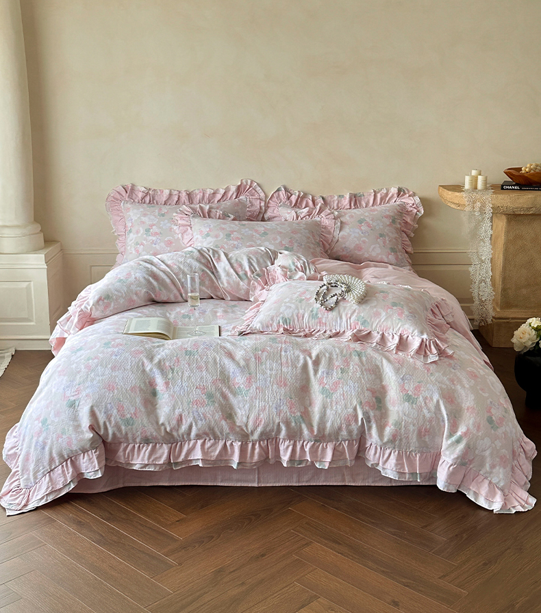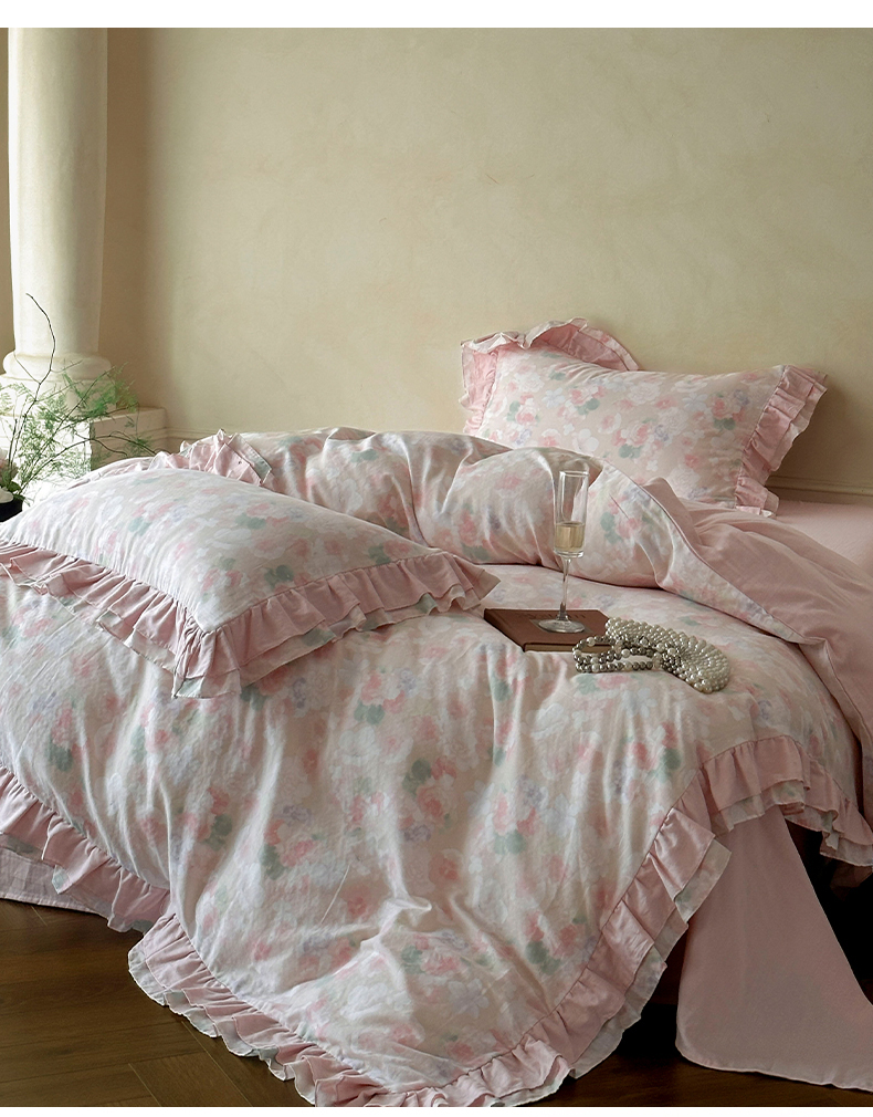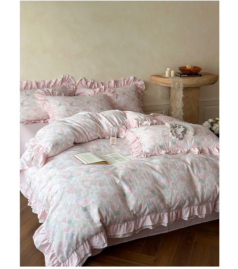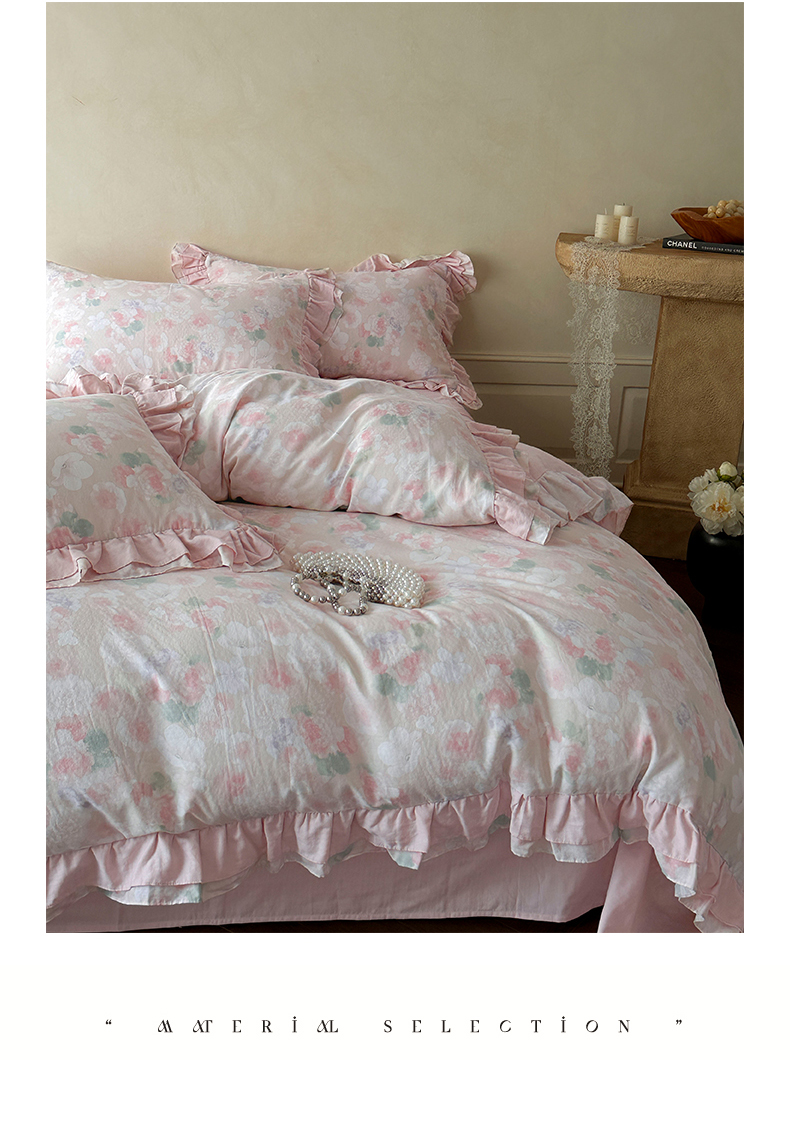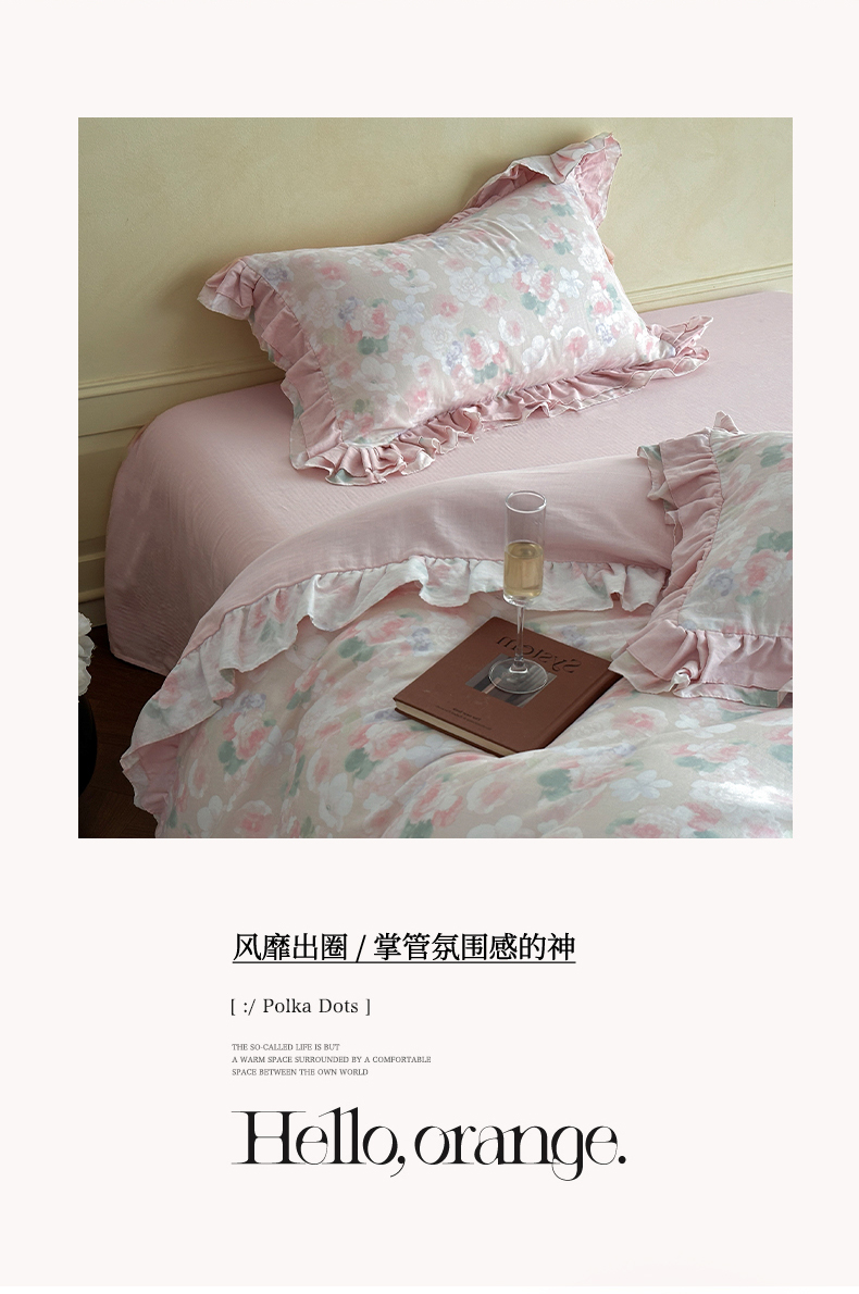 乐美家纺 2025新款全棉纯棉法式双层纱花边四件套 潮汐月影