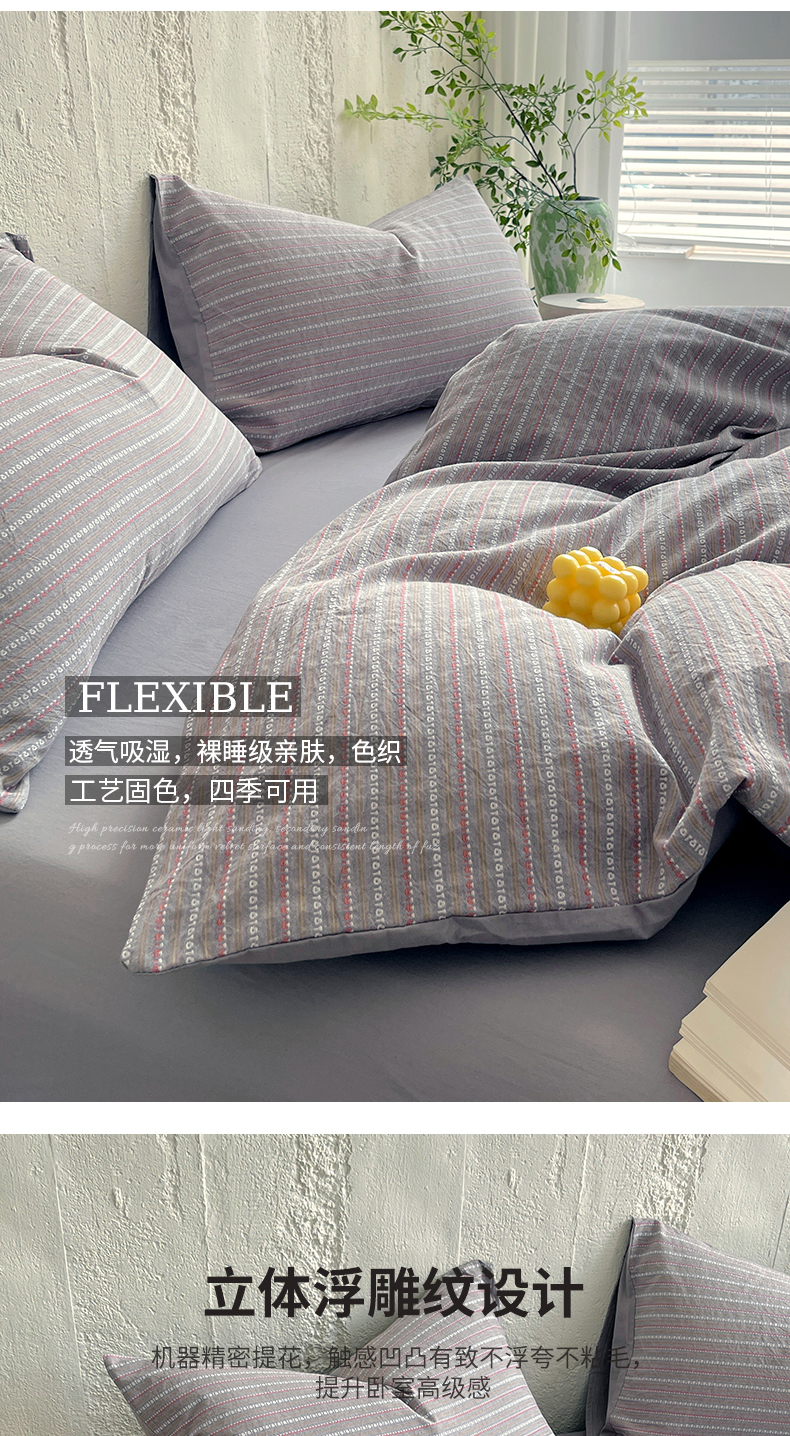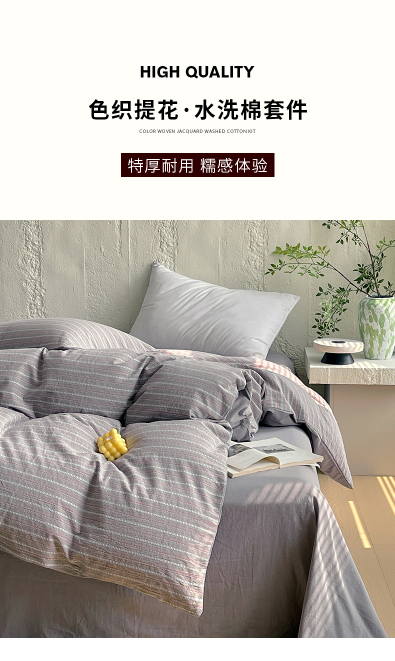 商品名称:(总)春皖家纺 2025春夏新款全棉纯棉色织提花斜纹水洗棉四件套