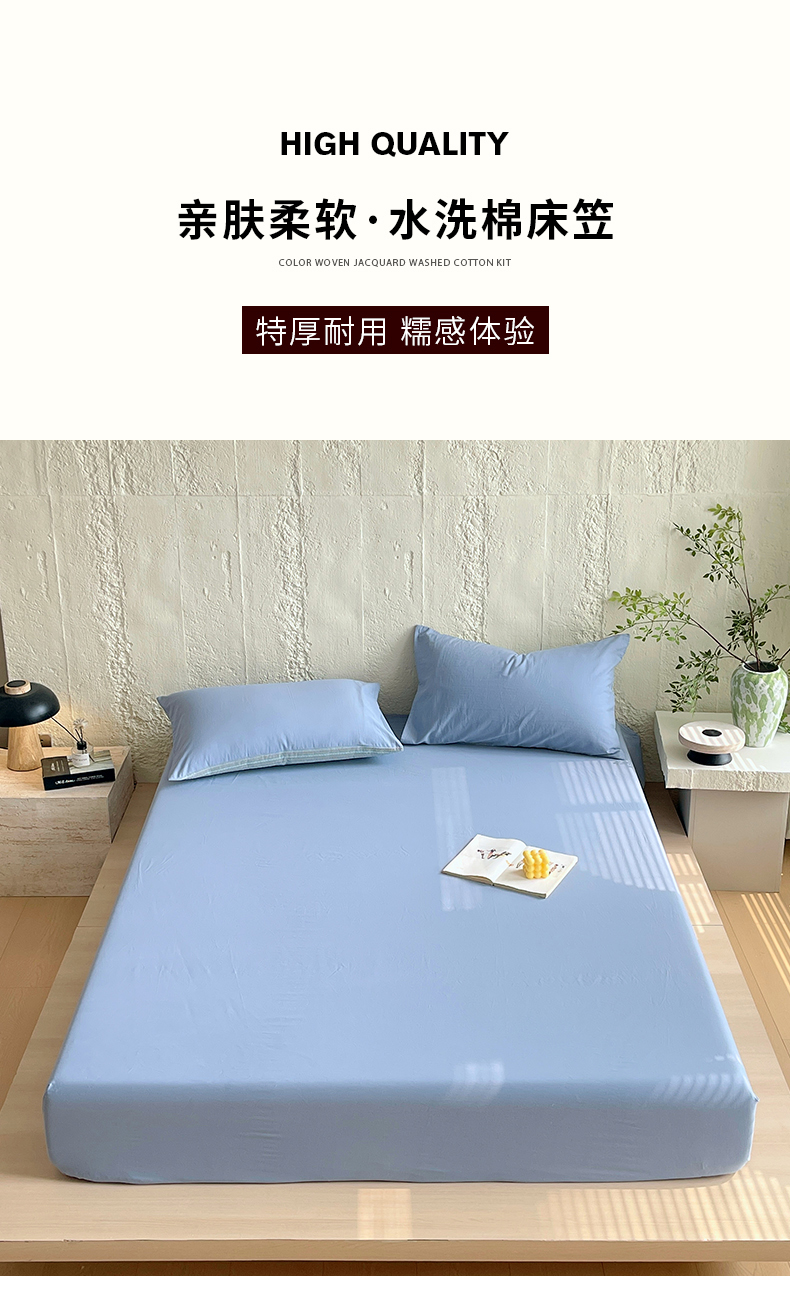 商品名称:(总)春皖家纺 2025春夏新款全棉纯棉色织提花斜纹水洗棉单床笠 床笠单件