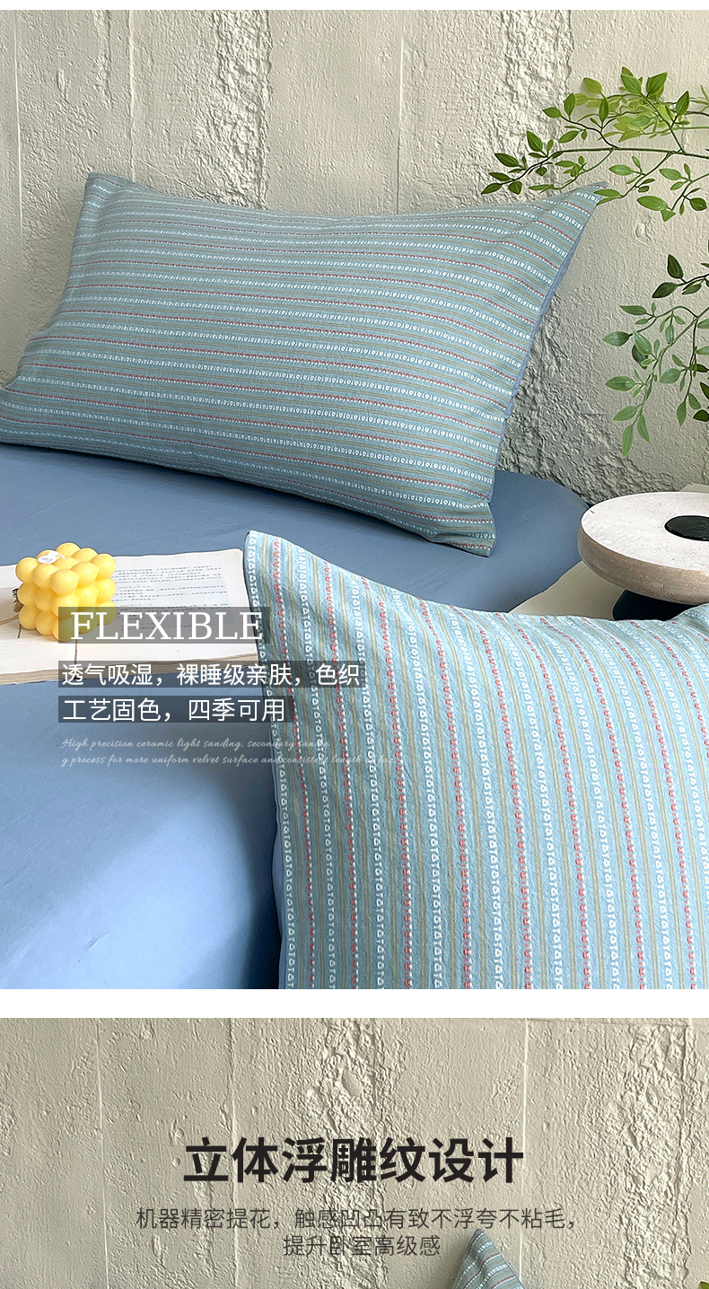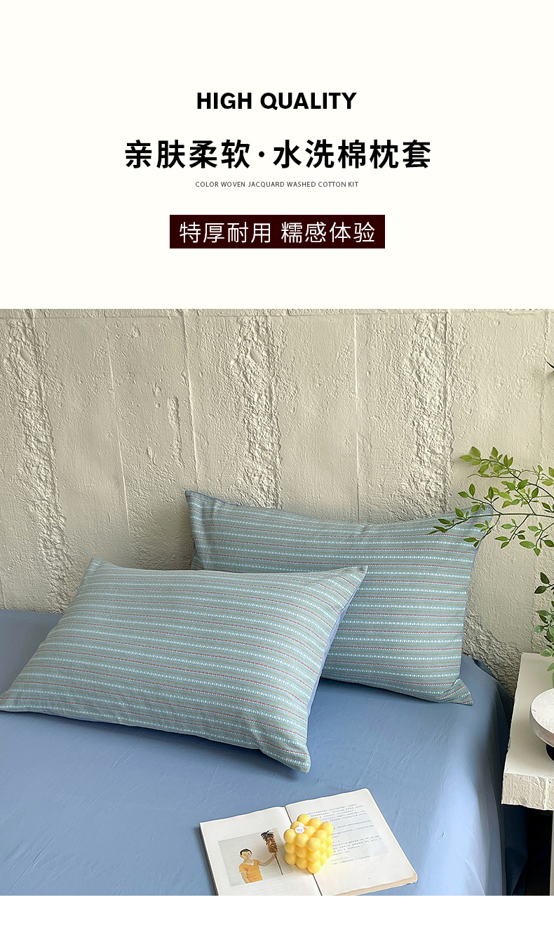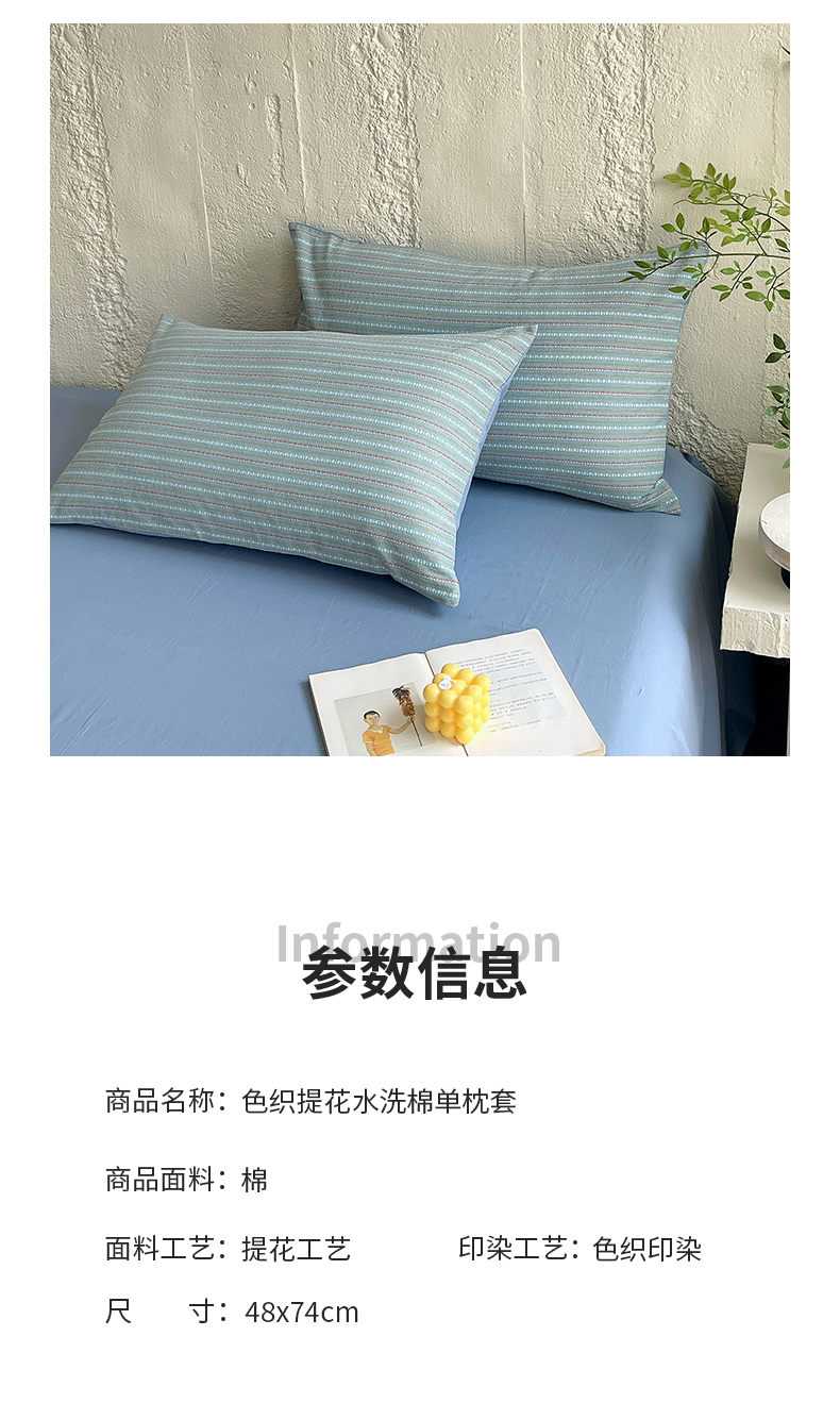 商品名称:(总)春皖家纺 2025春夏新款全棉纯棉色织提花斜纹水洗棉单枕套 枕套单件