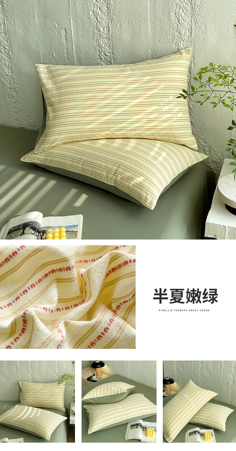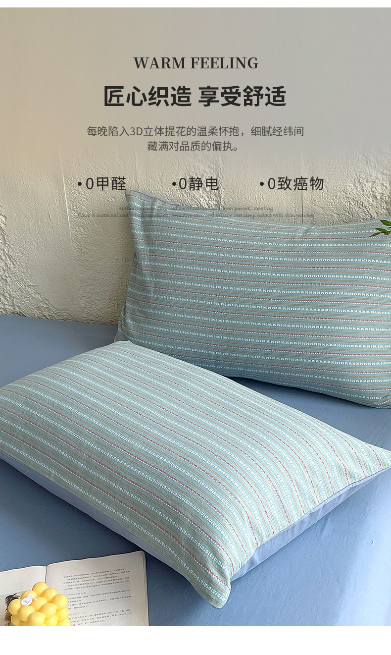 (总)春皖家纺 2025春夏新款全棉纯棉色织提花斜纹水洗棉单枕套 枕套单件
