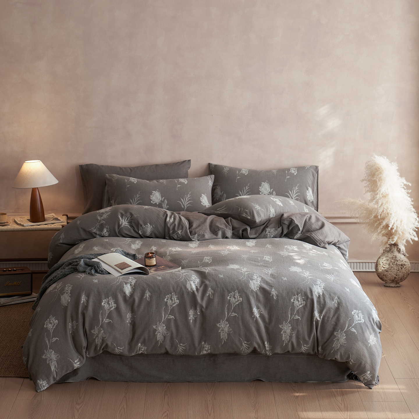 清雅福 2025新款A类全棉水洗色织大提花四件套 花意间-茶咖
