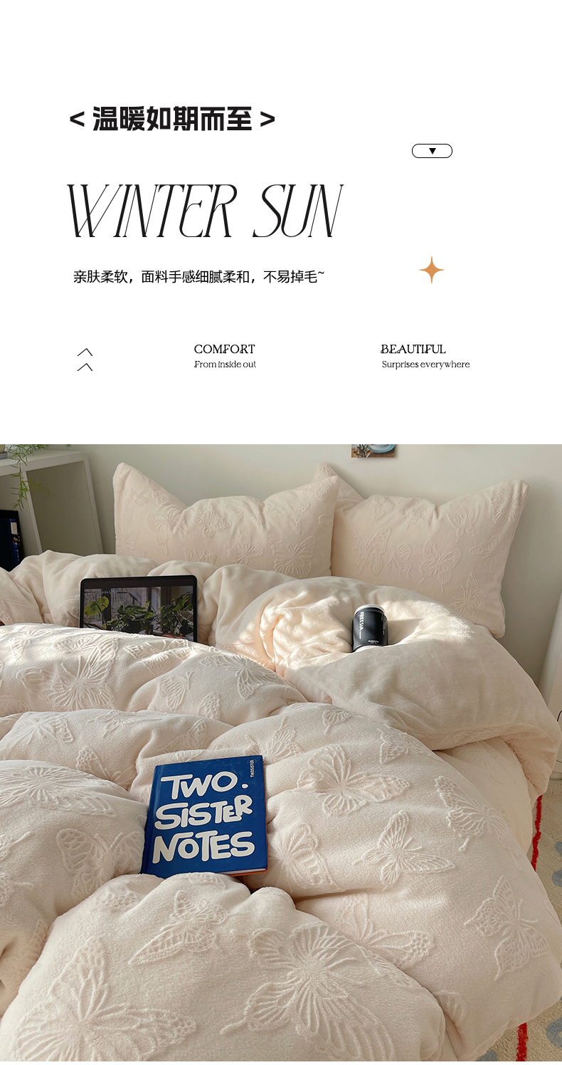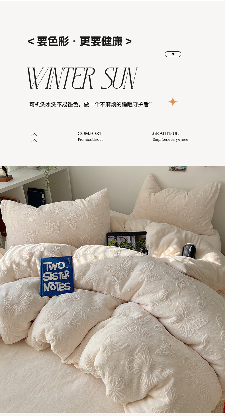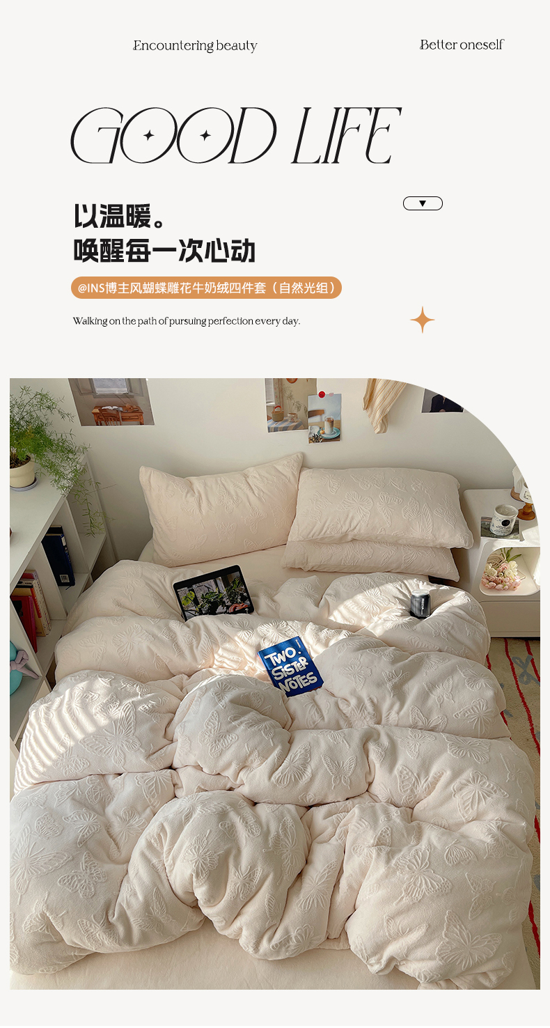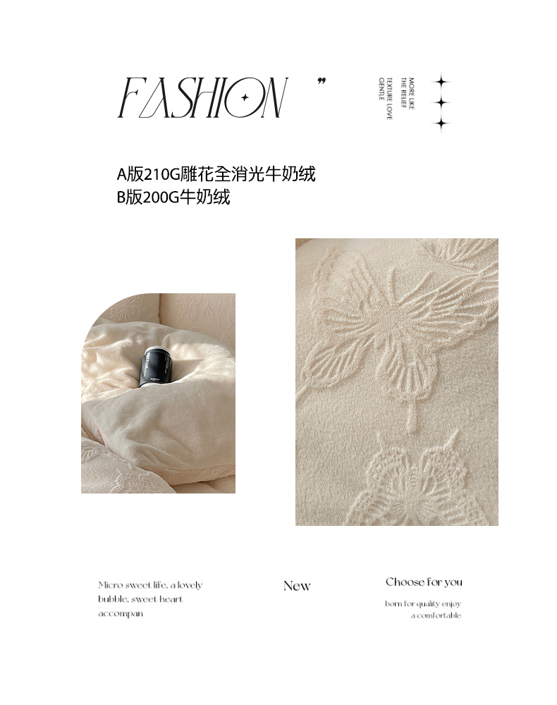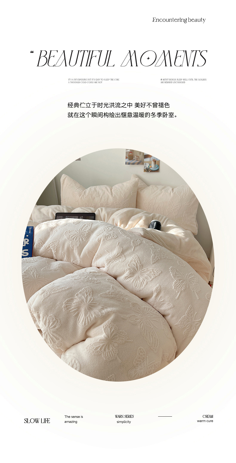 当前位置: 91家纺网 > 商品网购 > 床品套件 > 四件套 > 牛奶绒四件套 > 六巷胡同 2025新款INS博主风蝴蝶雕花A类牛奶绒四件套 雕花绒-蝴蝶白