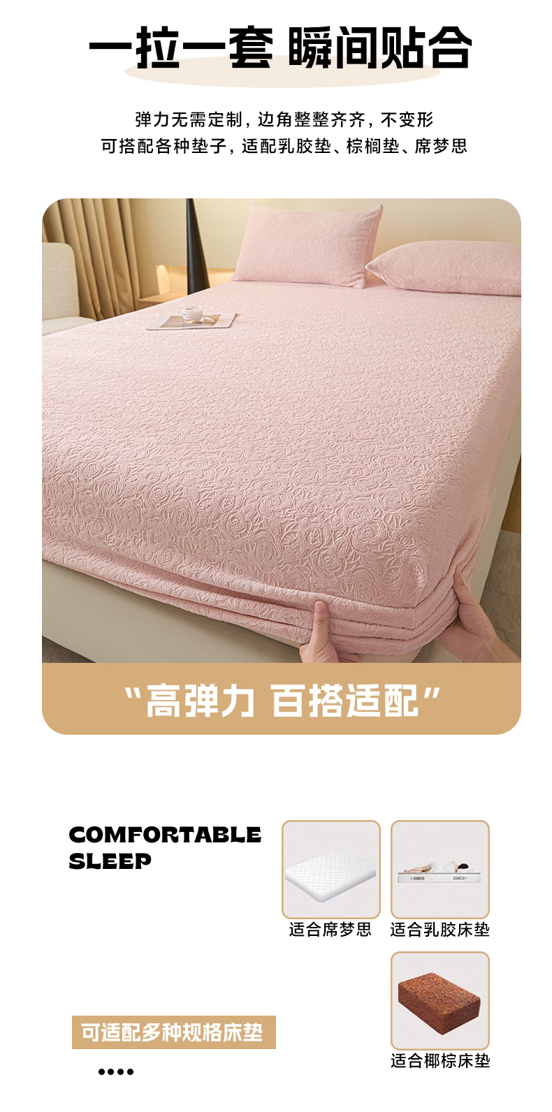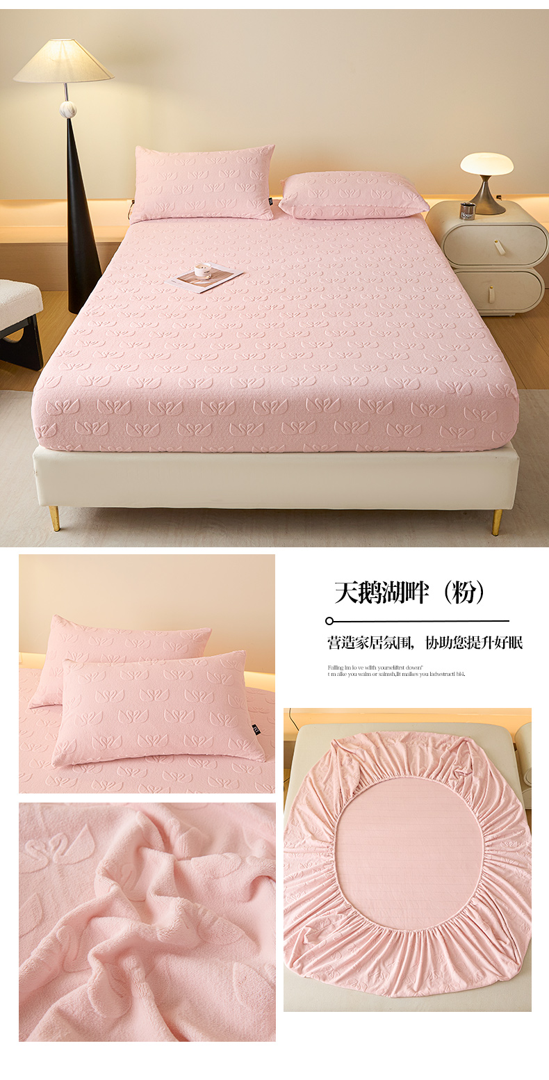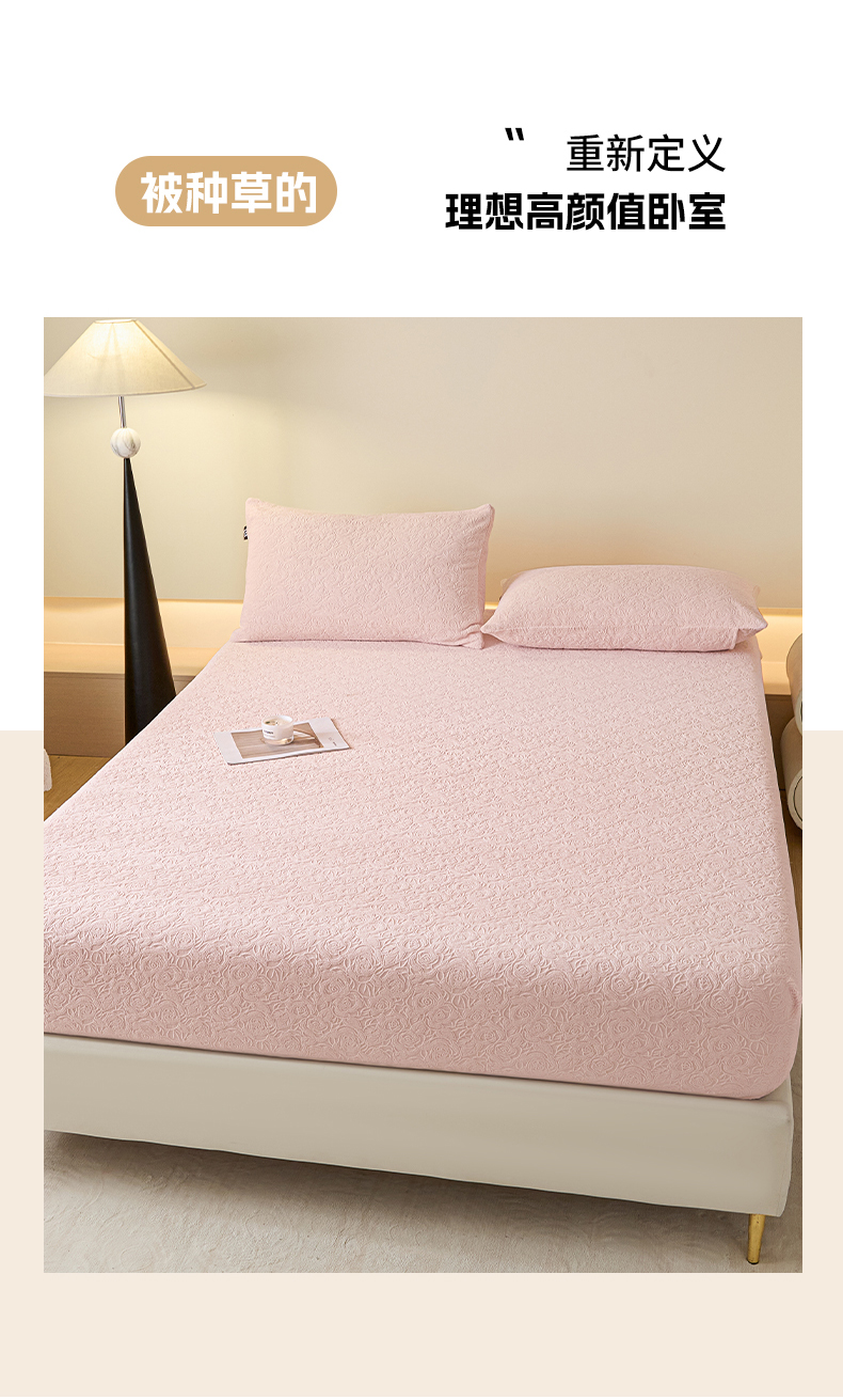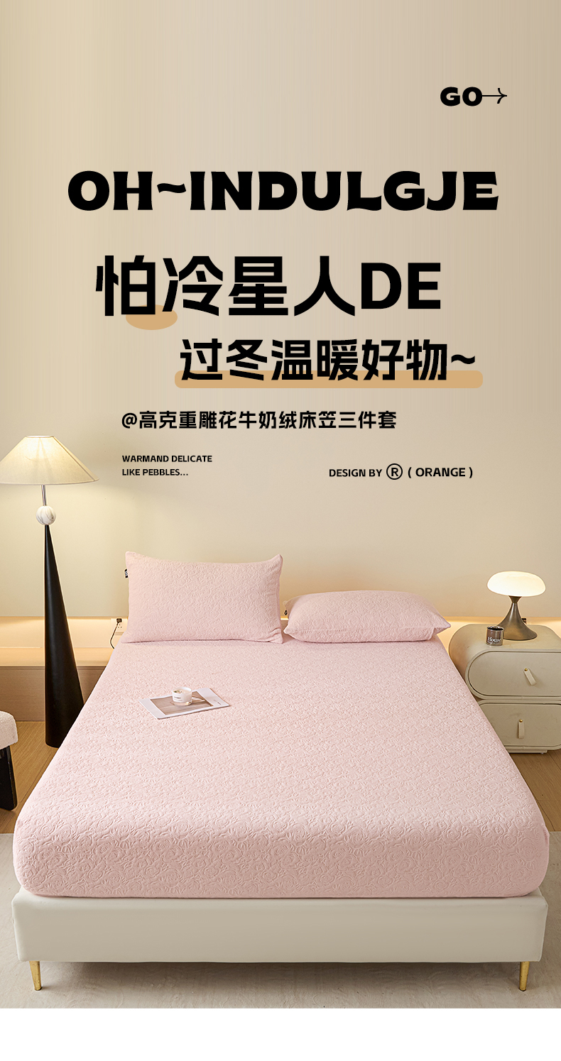 • 91家纺网 家纺一手货源 找家纺 乐美家纺 2025新款A类高克重牛奶绒雕花床笠三件套 那片花海(粉)