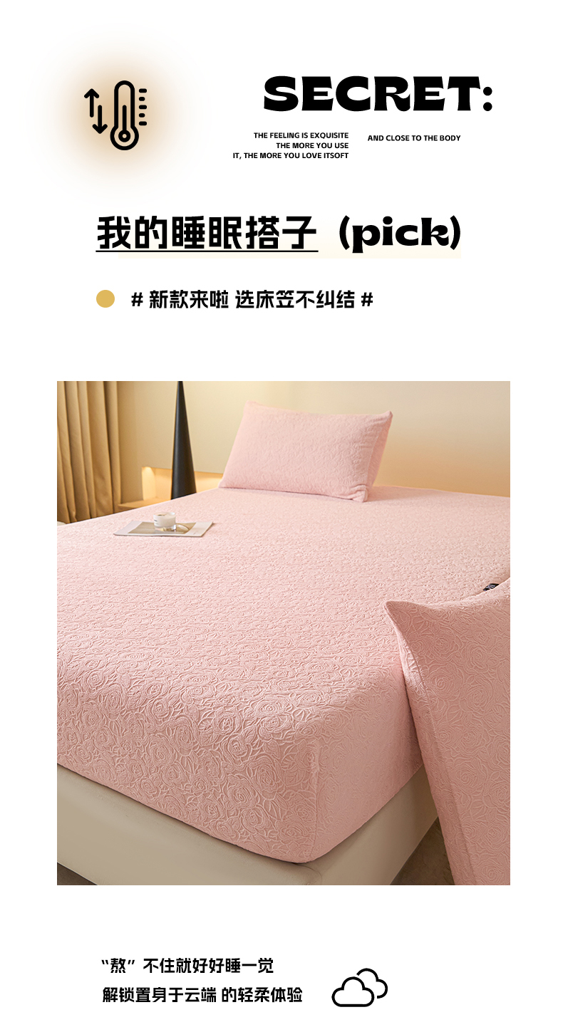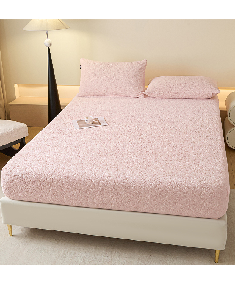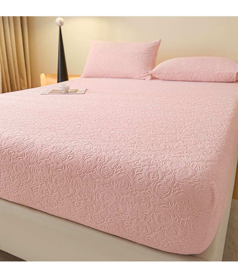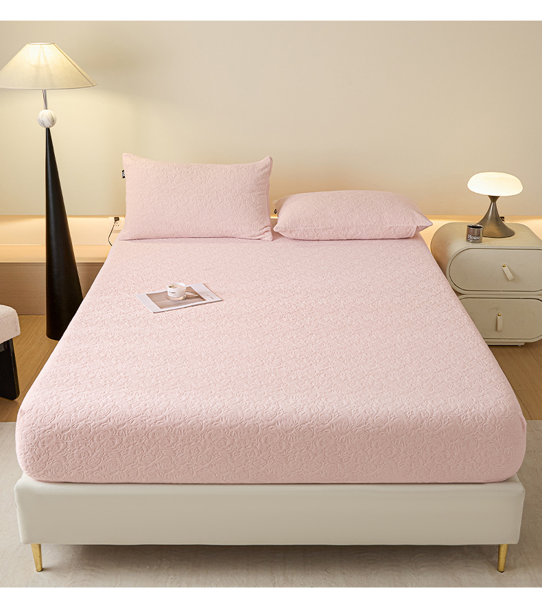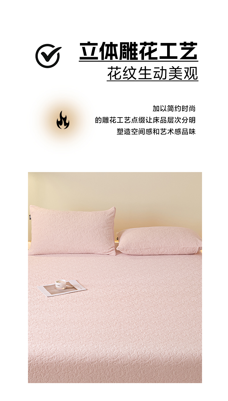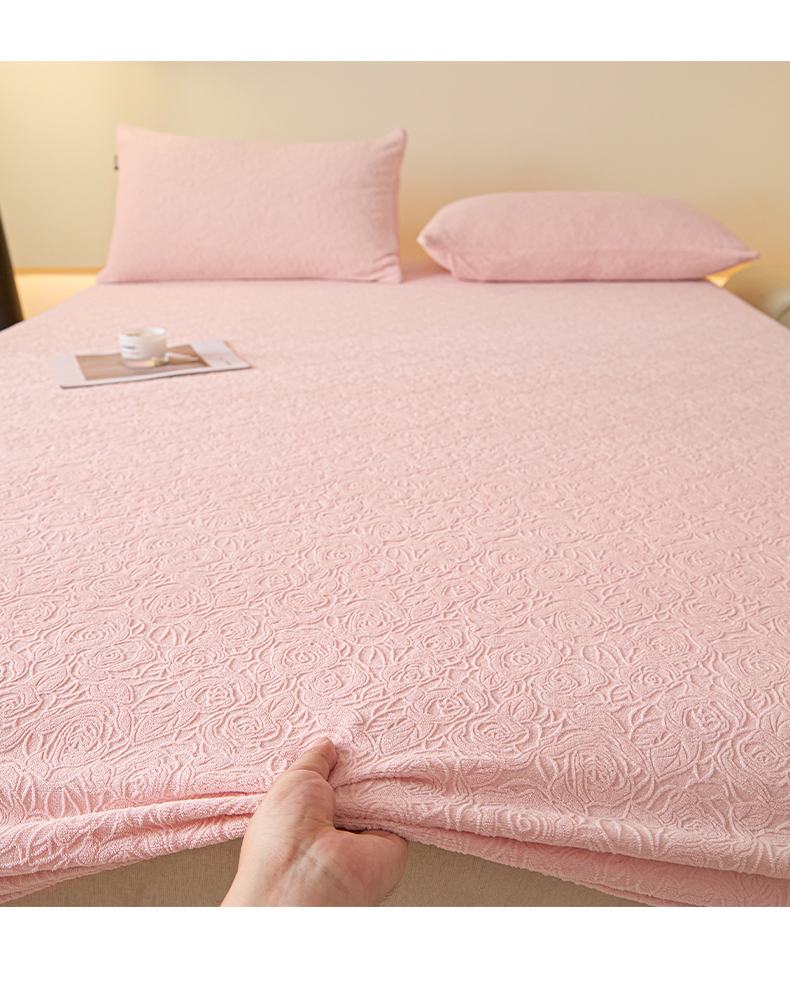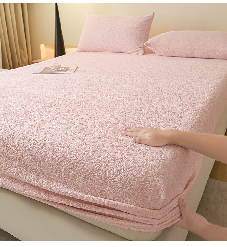 乐美家纺 2025新款A类高克重牛奶绒雕花床笠三件套 那片花海(粉)