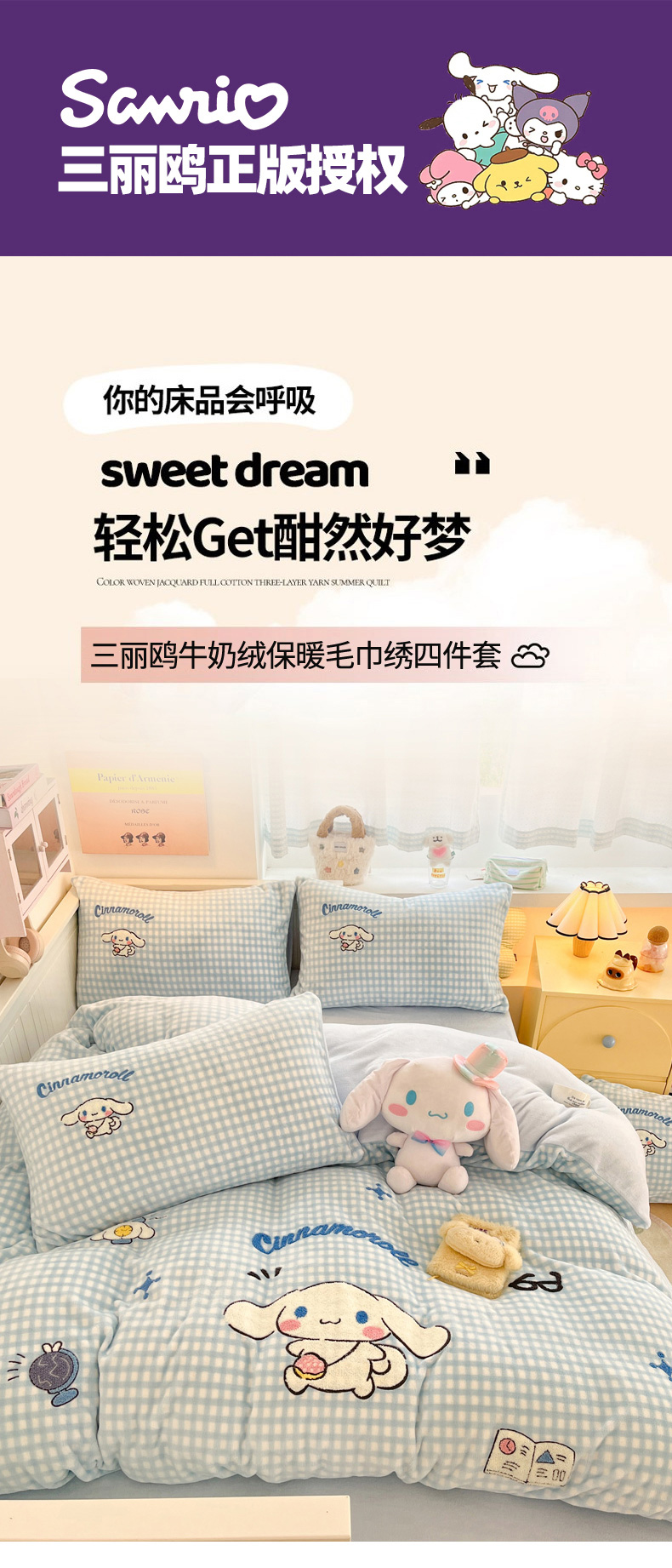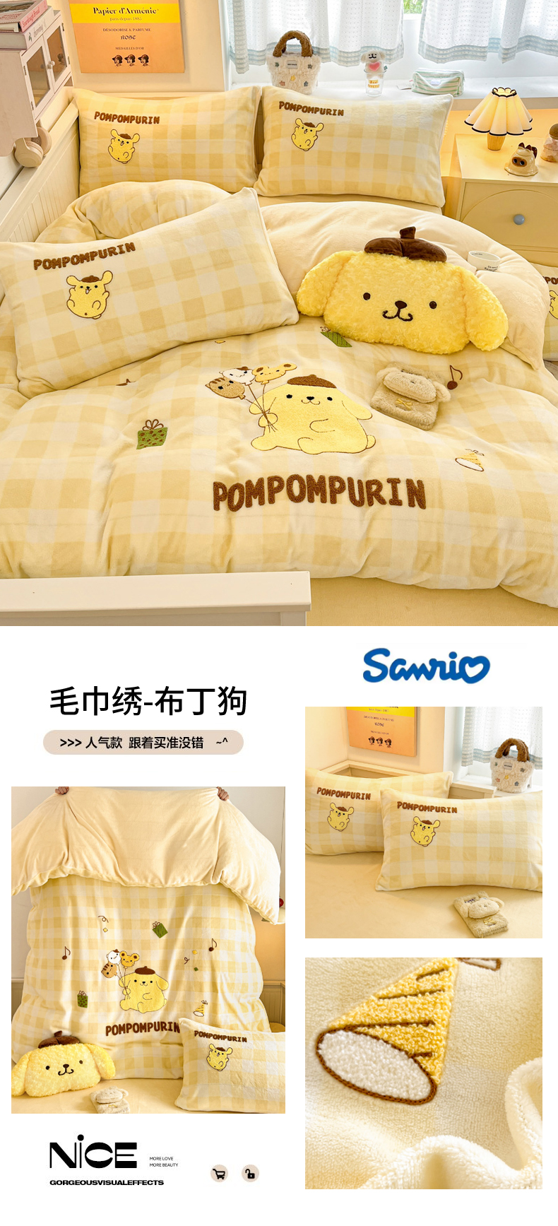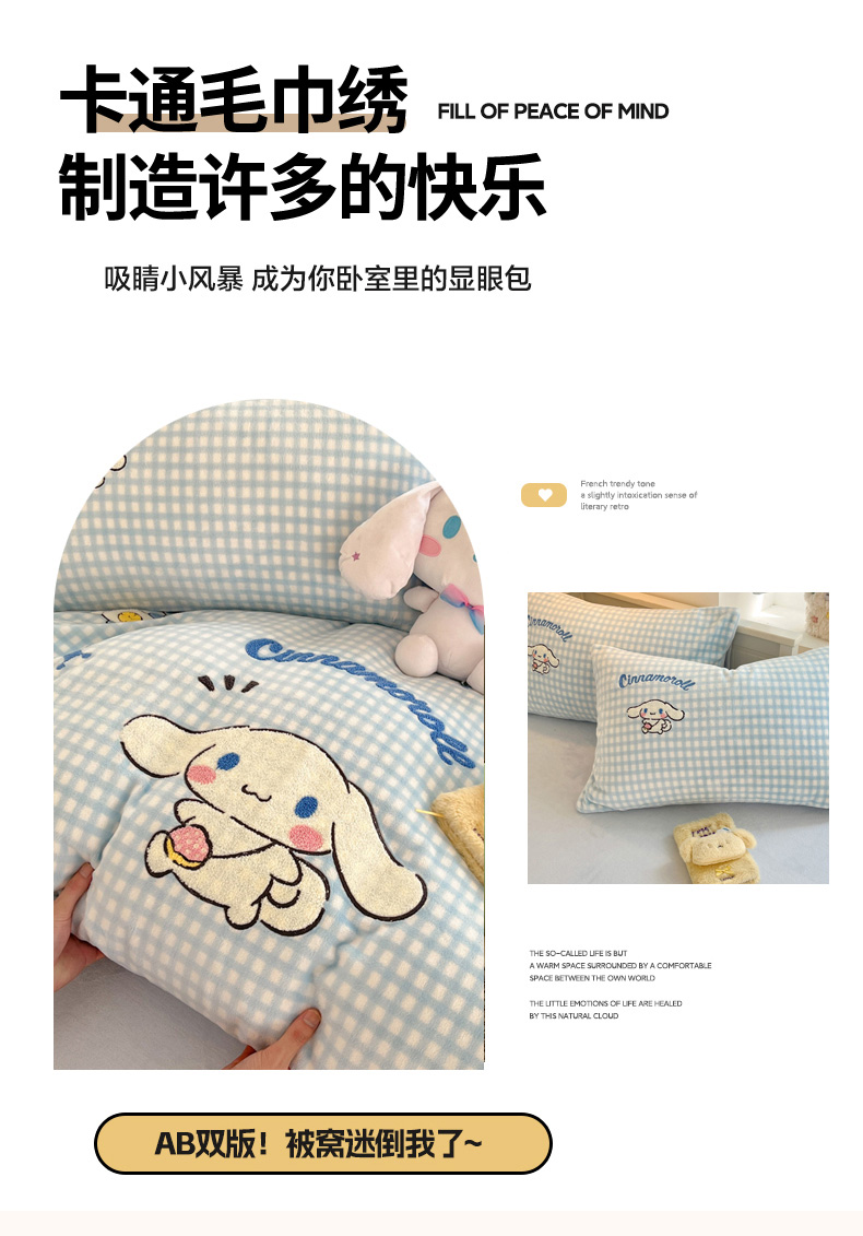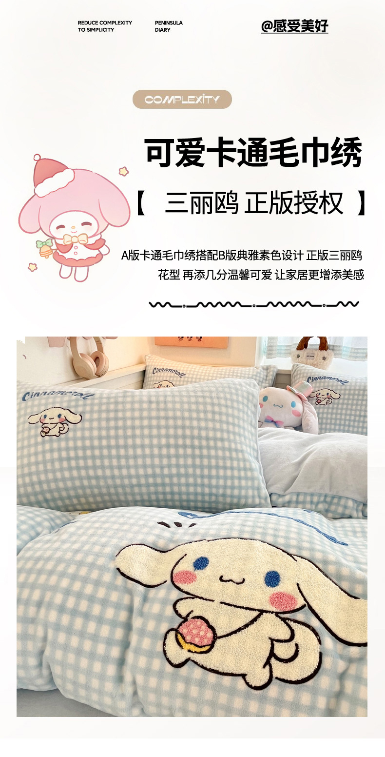当前位置: 91家纺网 > 商品网购 > 床品套件 > 四件套 > 牛奶绒四件套 > 暮思家居 2025新款正版授权高端毛巾绣绣花牛奶绒三丽鸥四件套 毛巾绣-快乐玉桂狗