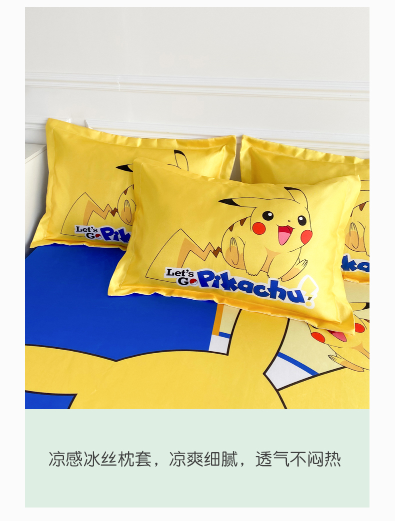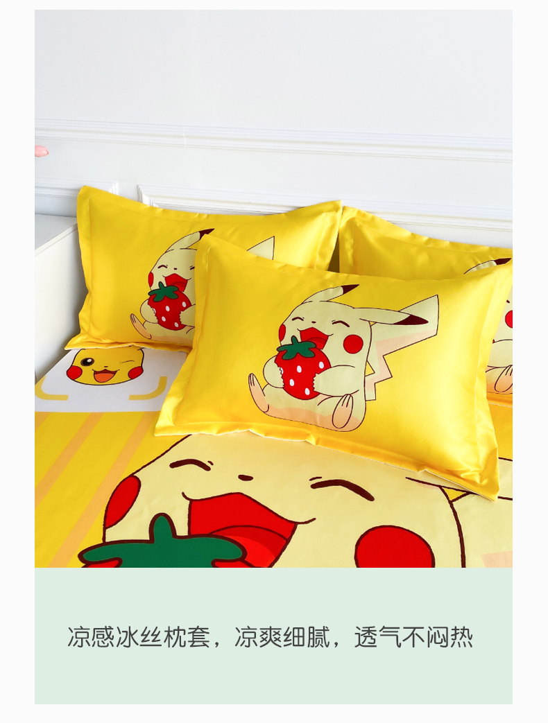 商品名称:一电 2025新款夏季卡通冰丝凉席床单床笠可水洗凉席床笠学生宿舍单人裸睡空调席子冰丝席枕套 呼呼皮卡丘