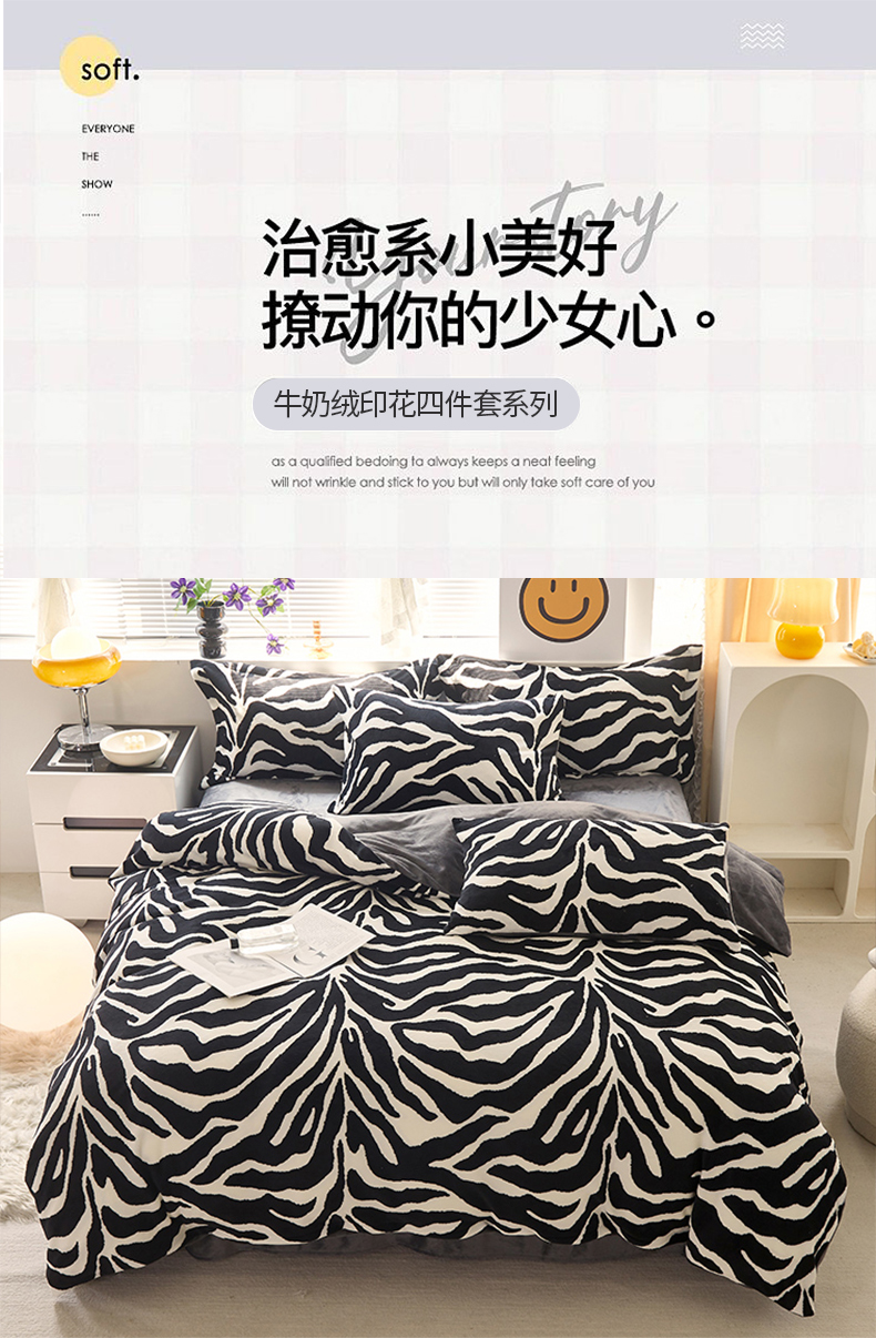 商品名称:仟网汇 2025新款直播热款跑量牛奶绒印花款四件套 轻奢豹纹