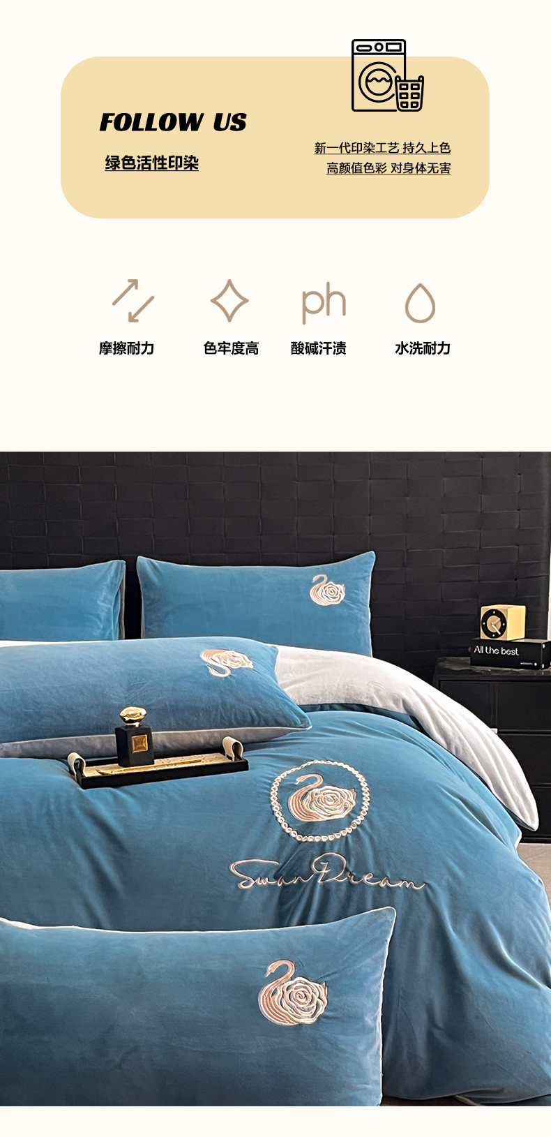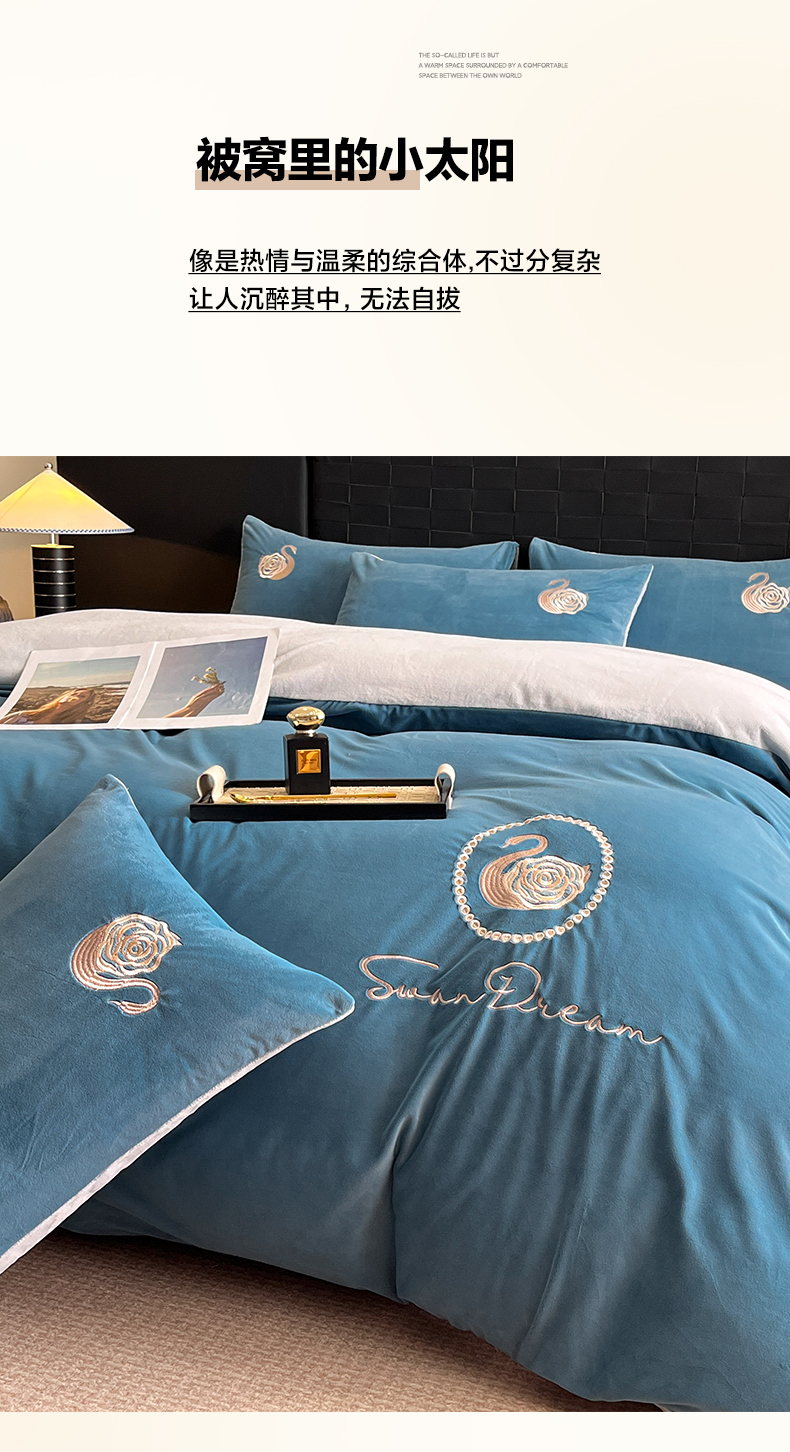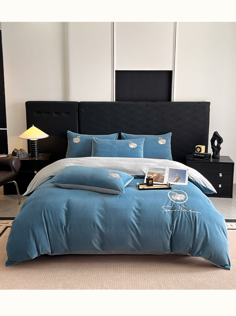 当前位置: 91家纺网 > 商品网购 > 床品套件 > 四件套 > 水晶绒四件套 > 如一 2025新款水晶绒刺绣四件套 天鹅-宾利蓝
