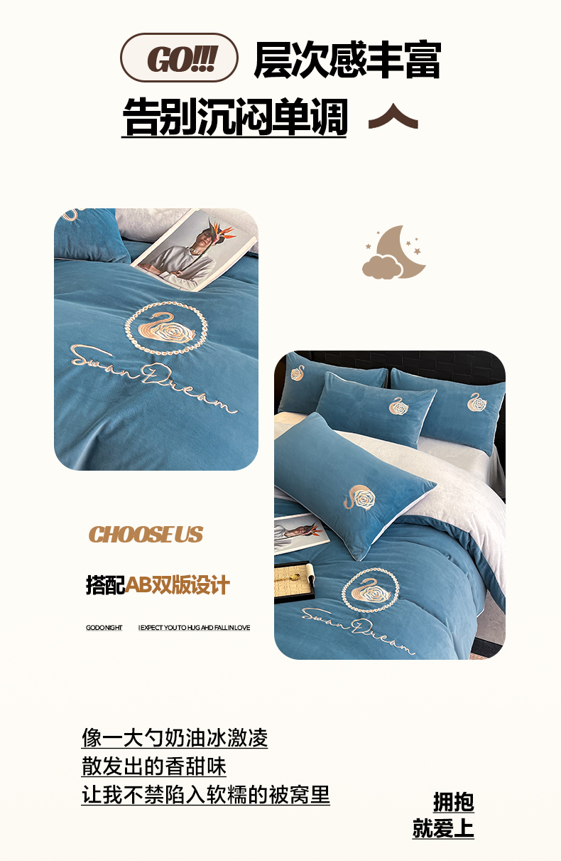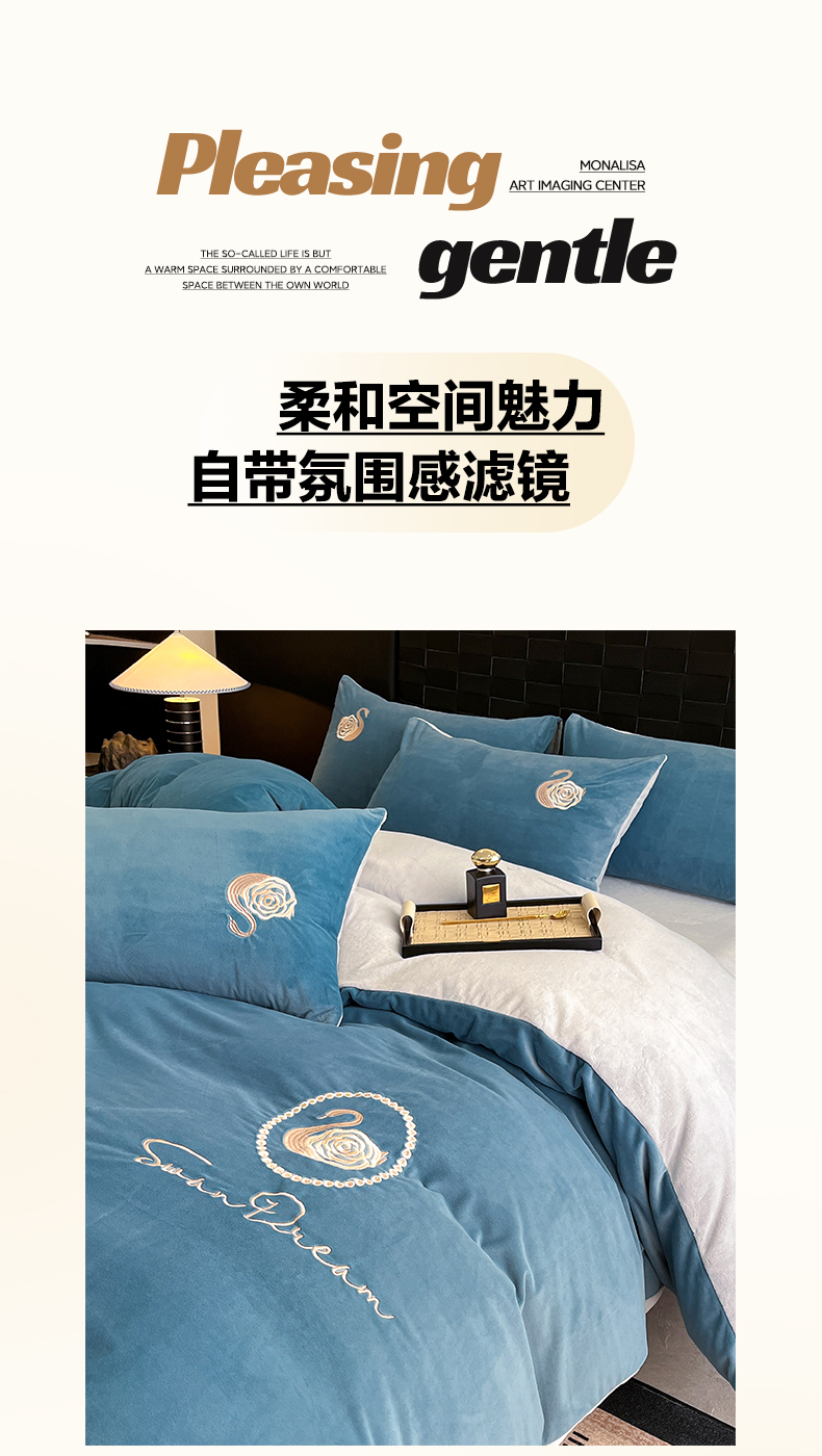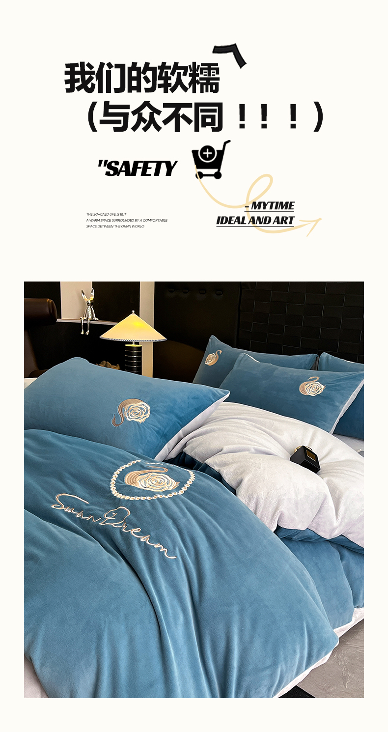 当前位置: 91家纺网 > 商品网购 > 床品套件 > 四件套 > 水晶绒四件套 > 如一 2025新款水晶绒刺绣四件套 天鹅-宾利蓝