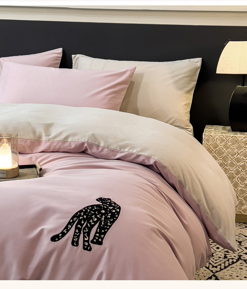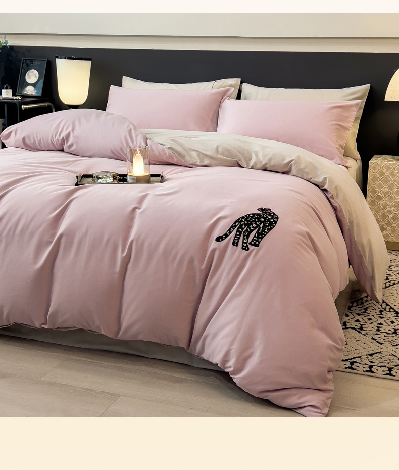 印季家纺 2025新款全棉50s磨毛绣花-黑豹四件套 悠悠紫-空气灰