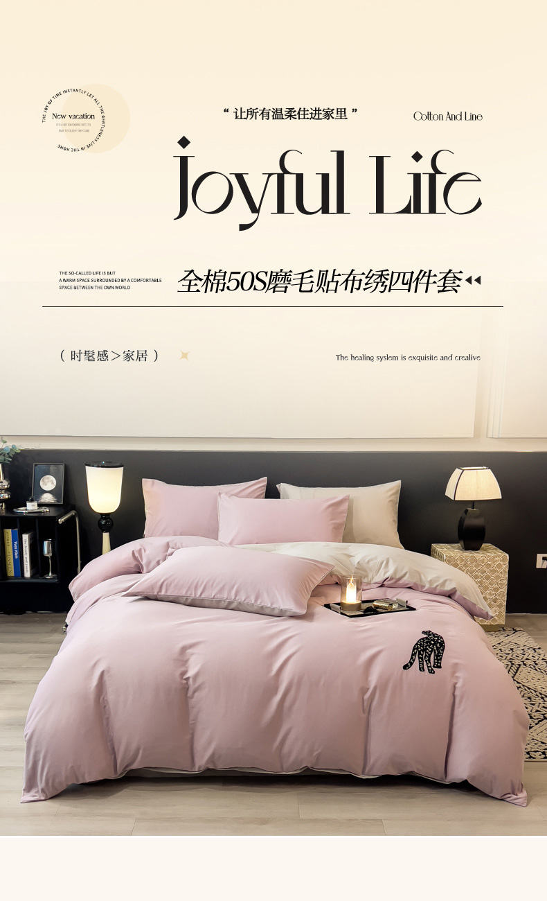 (总)印季家纺 2025新款全棉50s磨毛绣花-黑豹四件套,奶玉-浅驼,夹心粉-奶玉,咖灰-天青,浅驼-玛卡粉,悠悠紫-空气灰